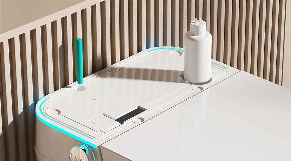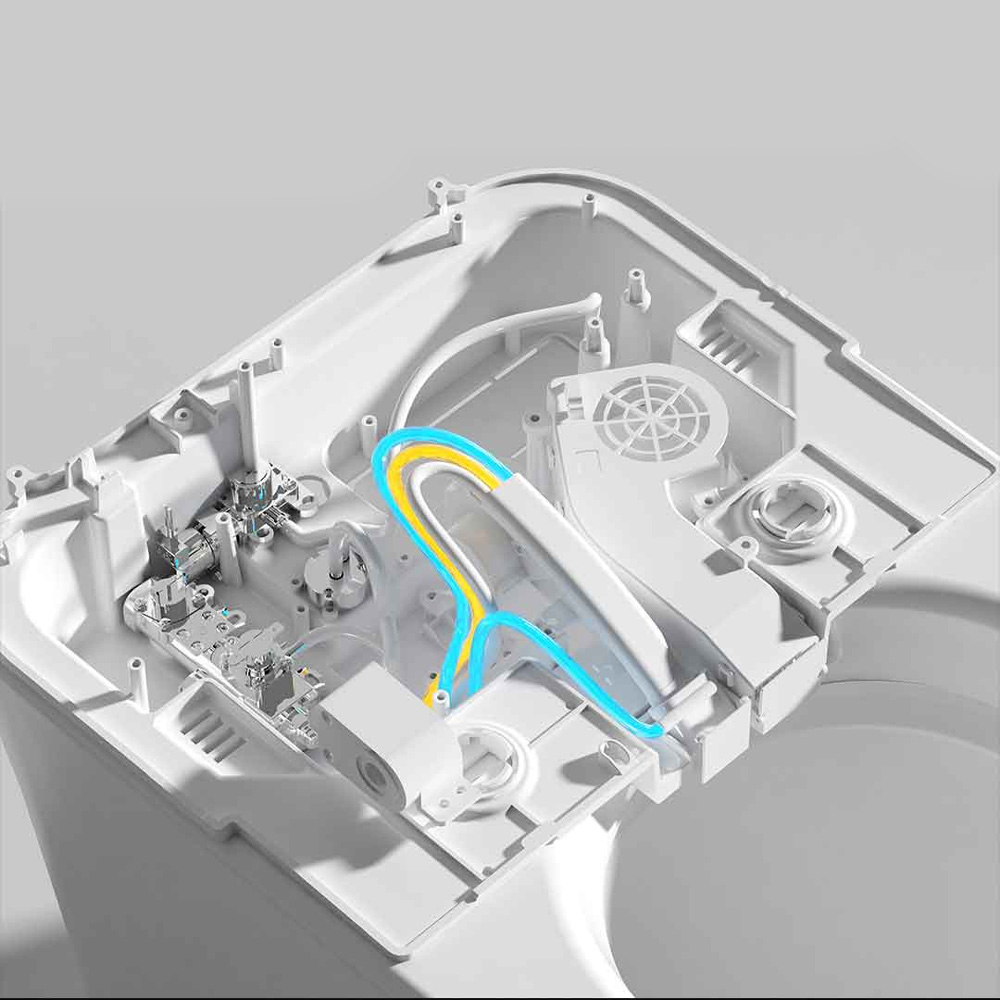 Bồn cầu thông minh Poonyu ZN001 được trang bị bình chứa nước hình chữ U, giúp tạo áp lực nước mạnh mẽ từ bên dưới, cho phép người dùng thoải mái xả nước mà không cần lo lắng.Hệ thống cấp nước hoạt động độc lập, kết hợp với chế độ xả kép, tạo ra lực xả mạnh tức thời.