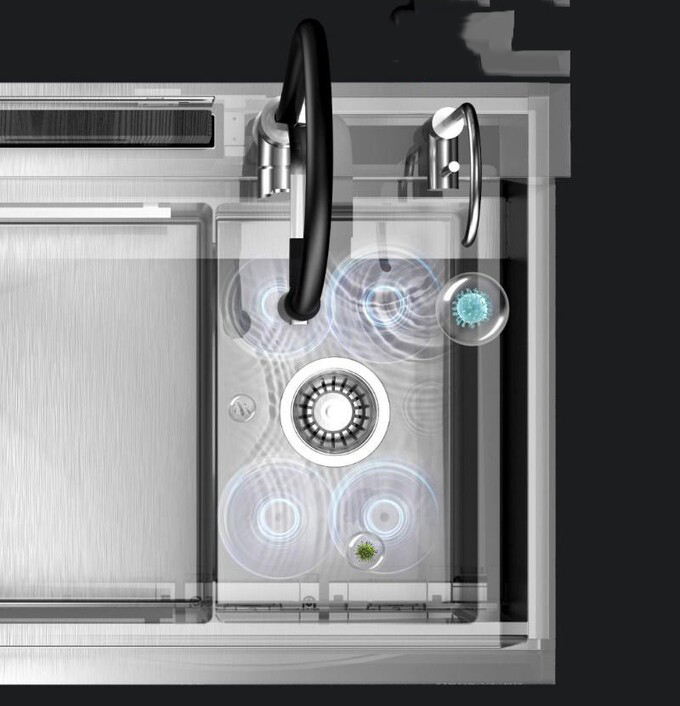 Ngày nay thực phẩm bẩn tràn lan trên thị trường, chính vì vậy để loại bỏ thuốc trừ sâu và các tạp chất trong thực phẩm, rau, củ, hoa quả… Mensarjor đã gắn máy rung siêu âm vào bồn rửa giúp tránh được các tác nhân gây bệnh từ thuốc trừ sâu hoặc các tạp chất trong thực phẩm.