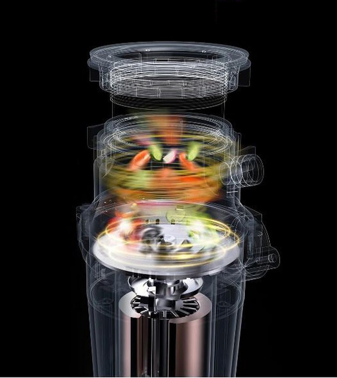 Để xử lý rác thải hữu cơ trong căn bếp, Xiaomi Mensarjor có lắp một máy xay xử lý rác ngay bên dưới bồn rửa, Máy hoạt động dựa trên nguyên lý xay, nghiền nát rác thải bằng lưỡi cắt có tốc độ động cơ lên đến 2600rpm và công suất tới 370W. Việc kết hợp lưỡi dao cứng cáp bên trong khoang nghiền, máy sẽ nghiền nát thức ăn thừa, rau củ, vỏ hoa quả, các sản phẩm rác hữu cơ khác… thành hạt nhỏ li ti. Sau khi được nghiền nát chúng sẽ được xả theo đường ống nước thải chảy xuống hầm chứa hoặc ra ngoài.