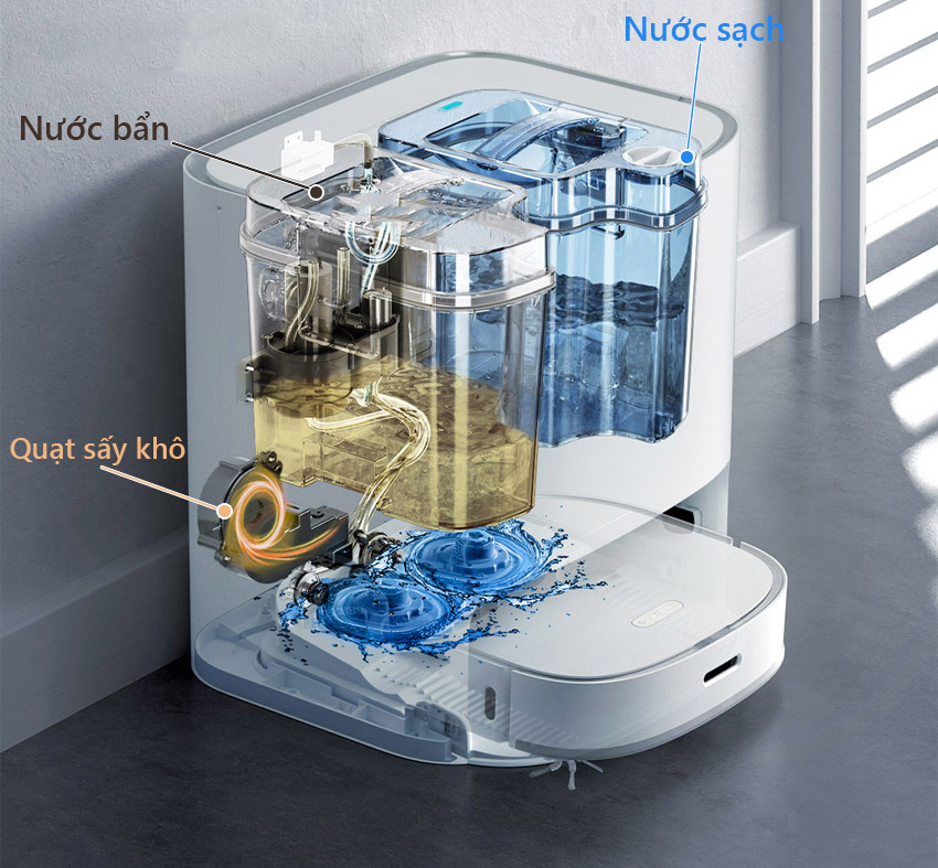Giặt giẻ và sấy khô tự động tại Dock sạc