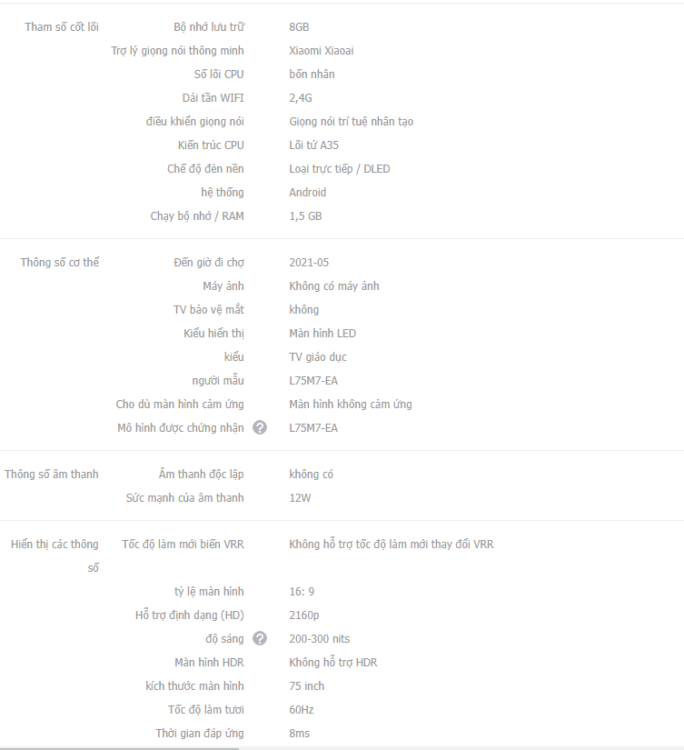 Phiên bản từ 32″ đến 43″ được trang bị chip Amlogic 64-bit lõi kép (2 lõi ARM Cortex-A53, GPU ARM Mali-450 MP2) kết hợp với RAM 1 GB và bộ nhớ trong 8 GB. Mặt khác, phiên bản từ 50″ đến 75″ được trang bị chip Amlogic 64-bit lõi tứ (4 lõi ARM Cortext-A35, GPU ARM Mali-G31 MP2) cùng với RAM 1.5 GB và bộ nhớ trong 8 GB.
