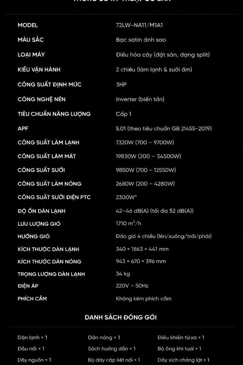 Điều hòa cây đứng Xiaomi Mijia Pro 72LW-NA11/M1A1 3HP 2 Chiều tiết kiệm điện cấp 1 Mới Nhất