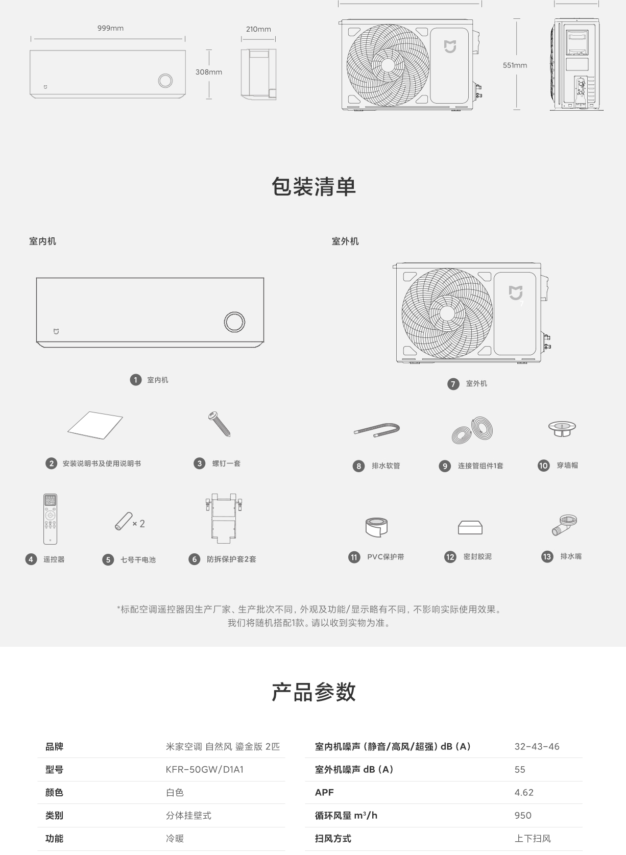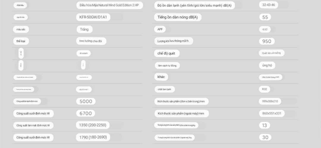 Điều hòa treo tường phiên bản mạ vàng Xiaomi Mija có thông số kỹ thuật 2 HP và 1,5 HP (tương đương 12000BTU và 18000BTU), áp dụng công nghệ chuyển đổi tần số DC hoàn toàn và đáp ứng các tiêu chuẩn về hiệu quả năng lượng ở cấp độ mới. Trong số đó, APF của phiên bản 2HP lên tới 4,62, trong khi phiên bản 1,5 HP có 5,13