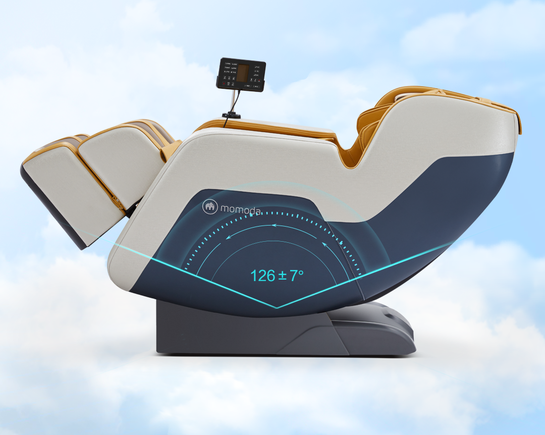 Trong chế độ không trọng lực, ghế massage Momoda 3D M518 sẽ tự động nâng lên hạ xuống phần lưng với góc 126 +/- 7 độ, đưa bạn vào trạng thái lơ lửng trong không gian. Tính năng này sẽ giúp giảm áp lực lên cột sống, giúp thư giãn hoàn toàn cả cơ thể và tâm trí, nhanh chóng chìm vào giấc ngủ. Bạn có thể điều khiển và kiểm soát góc độ khác nhau, nâng lên hạ xuống điều chỉnh cho cơ thể vào một vị trí thoải mái nhất và chọn các cơ chế massage như: Xoa bóp tại chỗ, Massage từng phần, Nâng lưng dướ