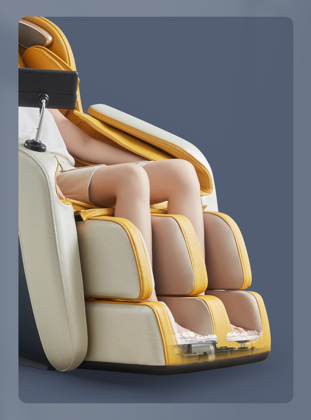 Phần đế bàn chân được trang bị 4 bánh xe và 16 đầu massage, giúp massage mạnh mẽ các huyệt đạo lòng bàn chân không hề thua kém các thợ massage chân chuyên nghiệp. Phần để chân có thể kéo dài tự do lên tới 15cm, phù hợp với chiều cao cơ thể người dùng.