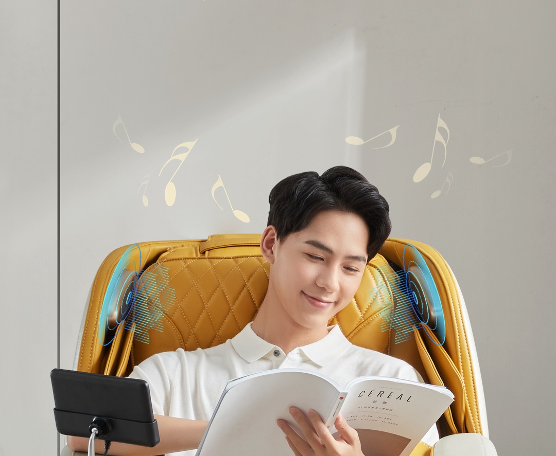 Trong quá trình massage, bạn có thể lắng nghe những bản nhạc mình yêu thích với hệ thống loa âm thanh vòm ở 2 bên ghế. Bạn có thể kết nối loa qua Bluetooth và bật những bài hát yêu thích trực tiếp từ điện thoại của mình.
