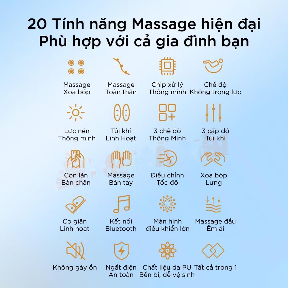 3 chế độ tùy chỉnh, 20 chức năng massage đa dạng