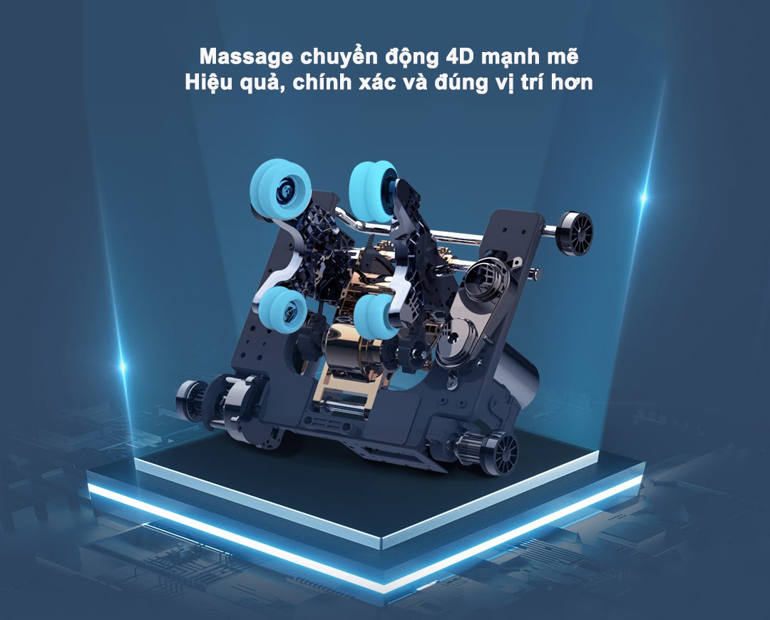 Hệ thống massage chìm 4D và cánh tay massage cố định được trang bị với những chuyển động có lực mạnh hơn và chính xác hơn. Trong đó, đầu massage có thể thu vào phía trước và phía sau 12cm cùng khả năng điều chỉnh lực 5 tốc độ theo thời gian thực. Giúp những chuyển động massage có thể phù hợp và cho hiệu quả cao hơn với đường cong sinh lý của cổ và lưng, mang đến trải nghiệm massage mới sâu hơn, mạnh hơn và đúng vị trí hơn so với tác động massage truyền thống.