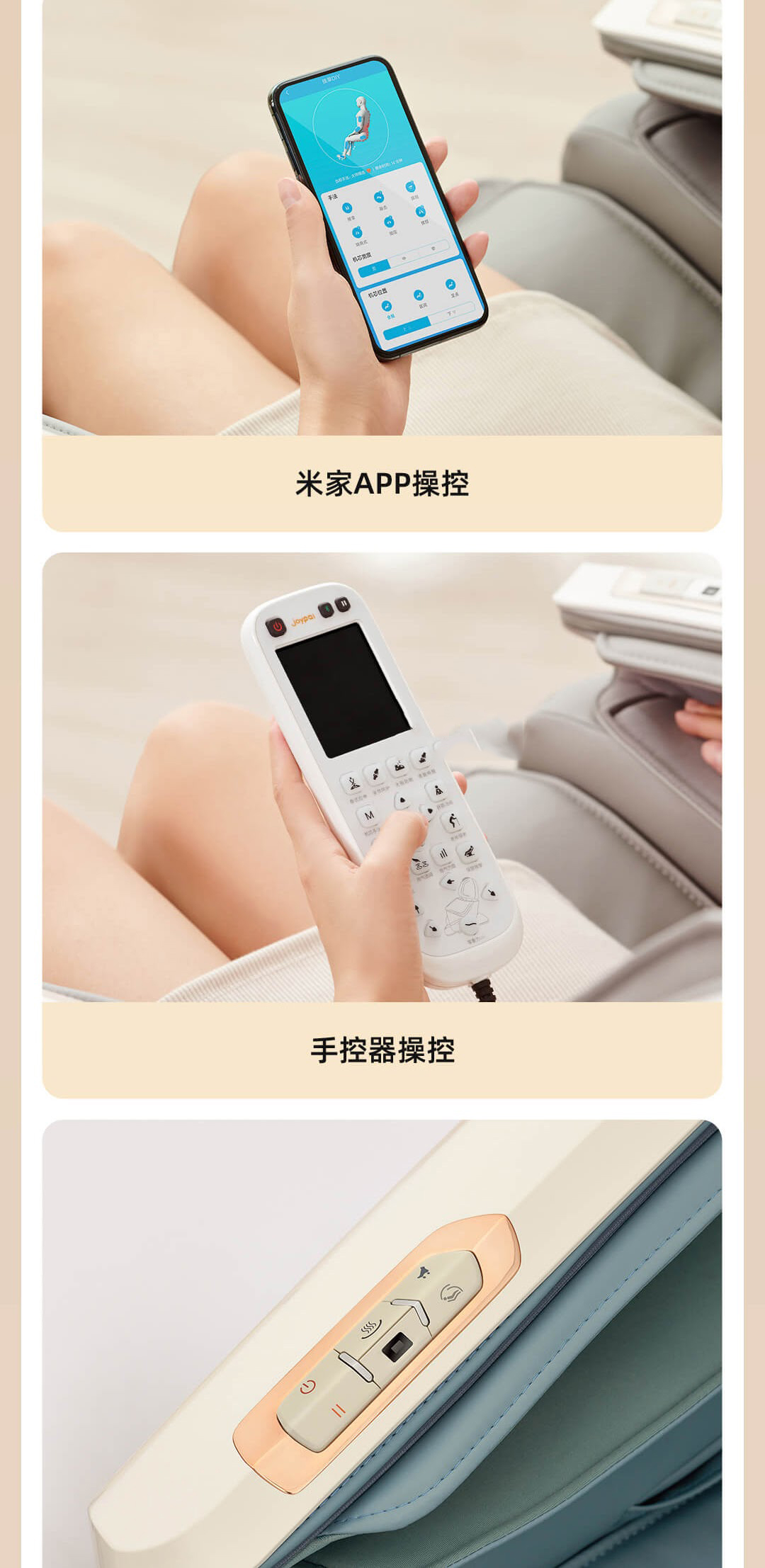 Giống như các ghế massage thông minh khác trên thị trường, bên cạnh việc kiểm soát thủ công bằng remote từ xa và phím nóng trên ghế, người dùng còn có thể dễ dàng theo dõi và điều chỉnh ghế massage thông qua App MiHome ngay trên smartphone. Đặc biệt, sản phẩm còn được trang bị công nghệ XiaoAI giúp cho việc tương tác giữa người dùng với ghế được thực hiện đơn giản và nhanh chóng hơn bằng giọng nói.