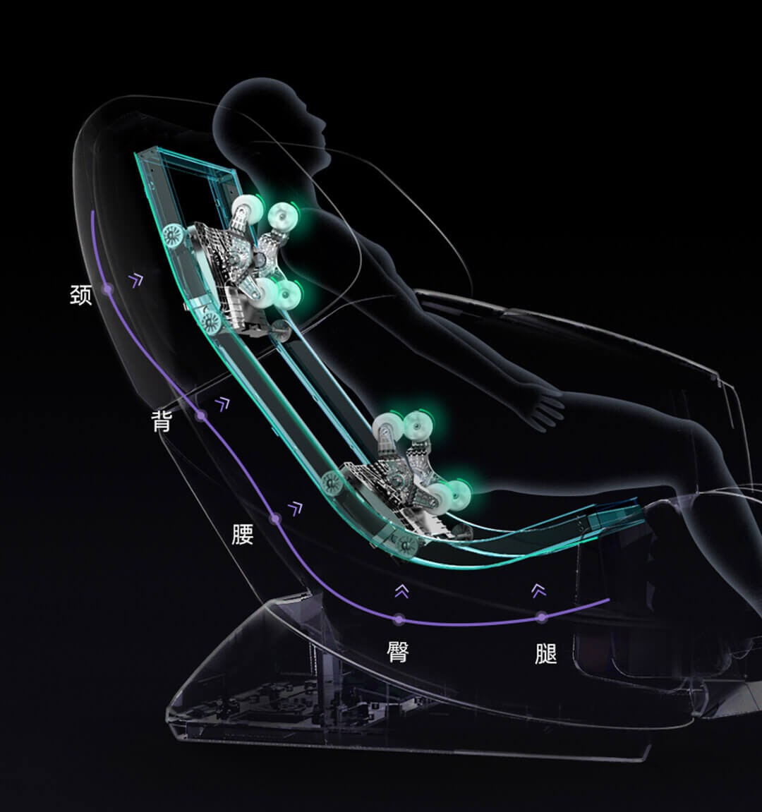 Ghế massage thông minh AI Joypal V2 EC-6261A sử dụng thiết kế đường ray dẫn hướng SL đặc biệt, có thể bao phủ hoàn toàn đường cong sinh lý của cơ thể con người. Cụ thể, đường ray chữ S phù hợp với đường cong cột sống, giúp làm giảm căng cơ ở mức độ sâu. Đường ray chữ L cho hiệu quả kéo dài hành trình massage đến các cơ mặt sau của đùi, giúp thư giãn các cơ bị căng do hoạt động nhiều hoặc tập luyện thể thao quá mức. Với việc tích hợp hệ thống cảm ứng 3D, lực massage mà ghế tạo ra sẽ được tự động điều chỉnh tùy theo từng bộ phận của cơ thể để có thể mang đến cảm giác thư giãn thoải mái nhất cho người dùng