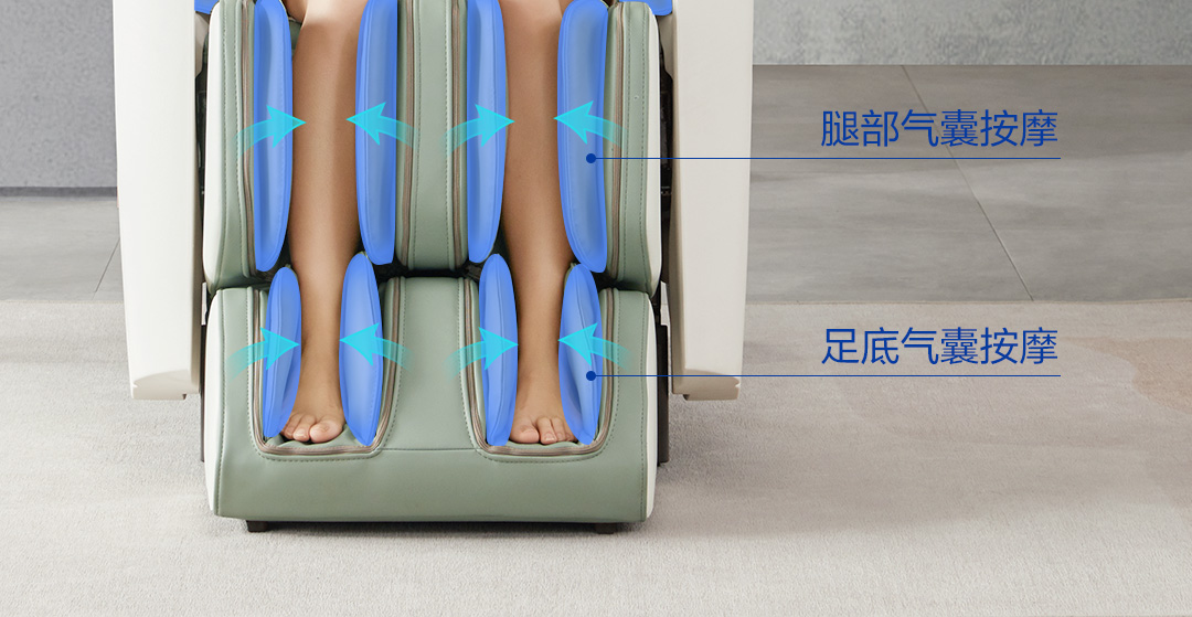 Túi khi 3 chiều 3D bao phủ vai, cánh tay, chân và bàn chân theo kiểu vỡ và các túi khí bao phủ đầu gối. Để toàn bộ cơ thể được ôm chặt, khi cọ xát với sự co bóp nhịp nhàng của túi khí. Bạn có thể điều chỉnh sự sự co bóp nông sâu của túi khí và thư giãn, cảm giác cơ thể trở nên khỏe khoắn sau khi massage.