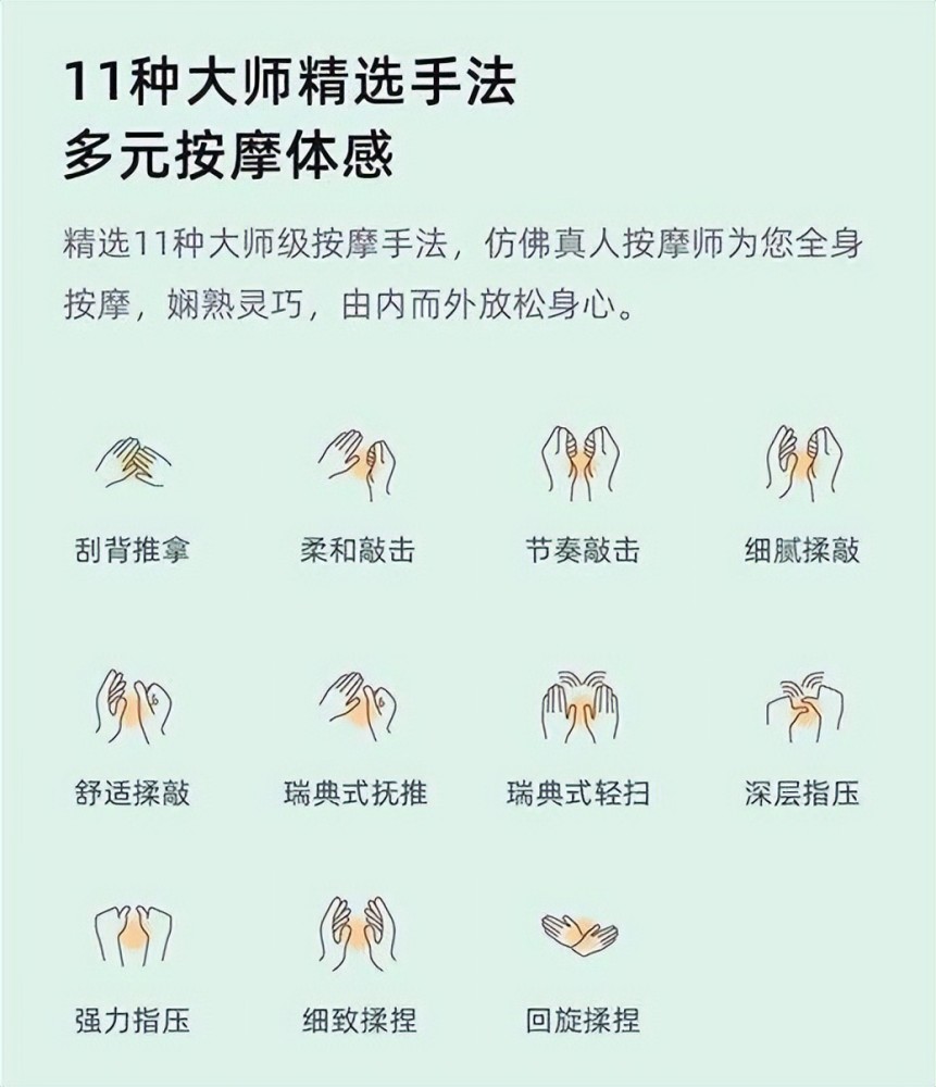 Ngoài ra, ghế massage Joypal AI còn tích hợp chuyển động ngón tay sâu 3D, cung cấp 11 kỹ thuật massage chuyên nghiệp như massage lưng, gõ nhẹ, gõ nhịp nhàng và nhào xoay, với cường độ vừa phải. Nói lời tạm biệt với máy ép hoàn toàn cơ học