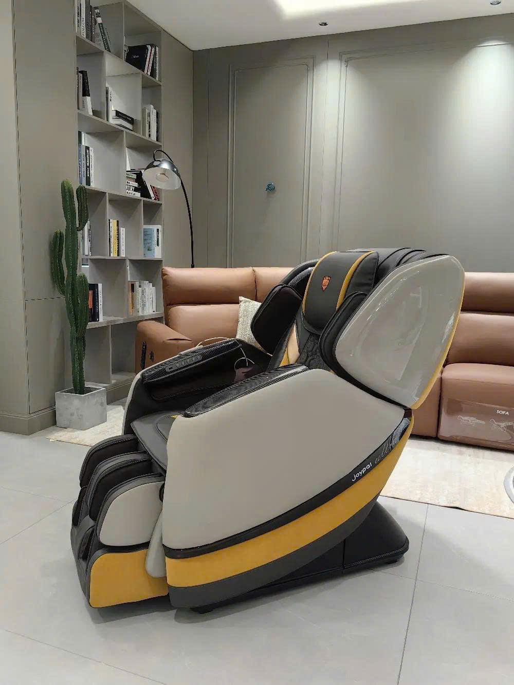 Ghế massage Joypal V2 Pro tích hợp mô-đun đặc biệt chăm sóc chân, đầu gối và bàn chân theo phong cách massage Thái. Phần bắp chân có thể đảo ngược và tùy biến góc độ nhờ bằng sáng chế ZL201621055560.8. Túi khí bao quanh bắp chân, mắt cá và bàn chân ép sóng linh hoạt, phối hợp với con lăn mát xa lòng bàn chân giúp tăng cường lưu thông máu, giảm mệt mỏi và tê bì. Người dùng sẽ cảm nhận cảm giác thư giãn sâu, như được chăm sóc tại spa pod chuyên nghiệp ngay tại phòng khách.