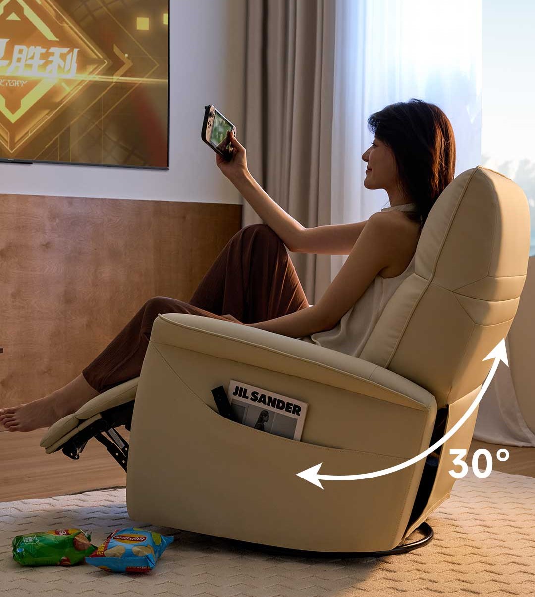 – 140°: Góc thư giãn hoàn hảo để xem phim, đọc sách hoặc vuốt ve thú cưng.