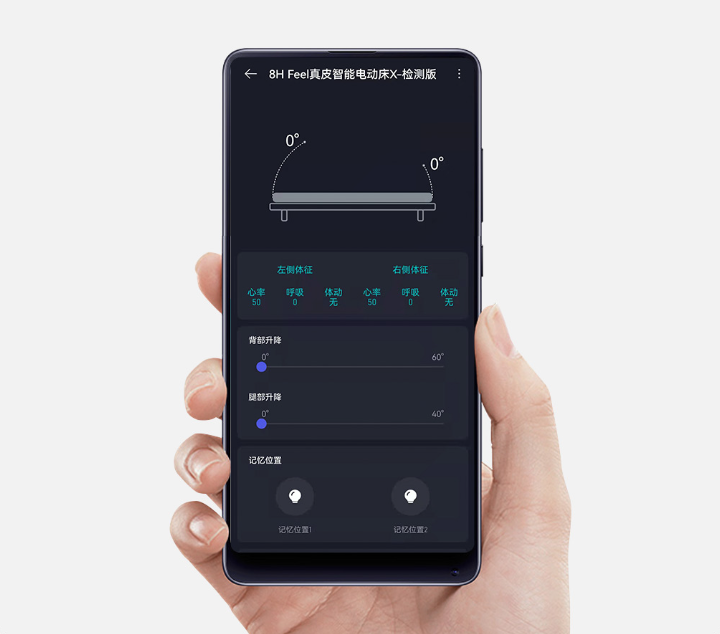 Giường điện này có thể điều chỉnh thông qua ứng dụng Mijia trên điện thoại và cũng có điều khiển từ xa không dây từ tính, cho phép người dùng dễ dàng thay đổi độ nâng của giường và các tính năng khác.