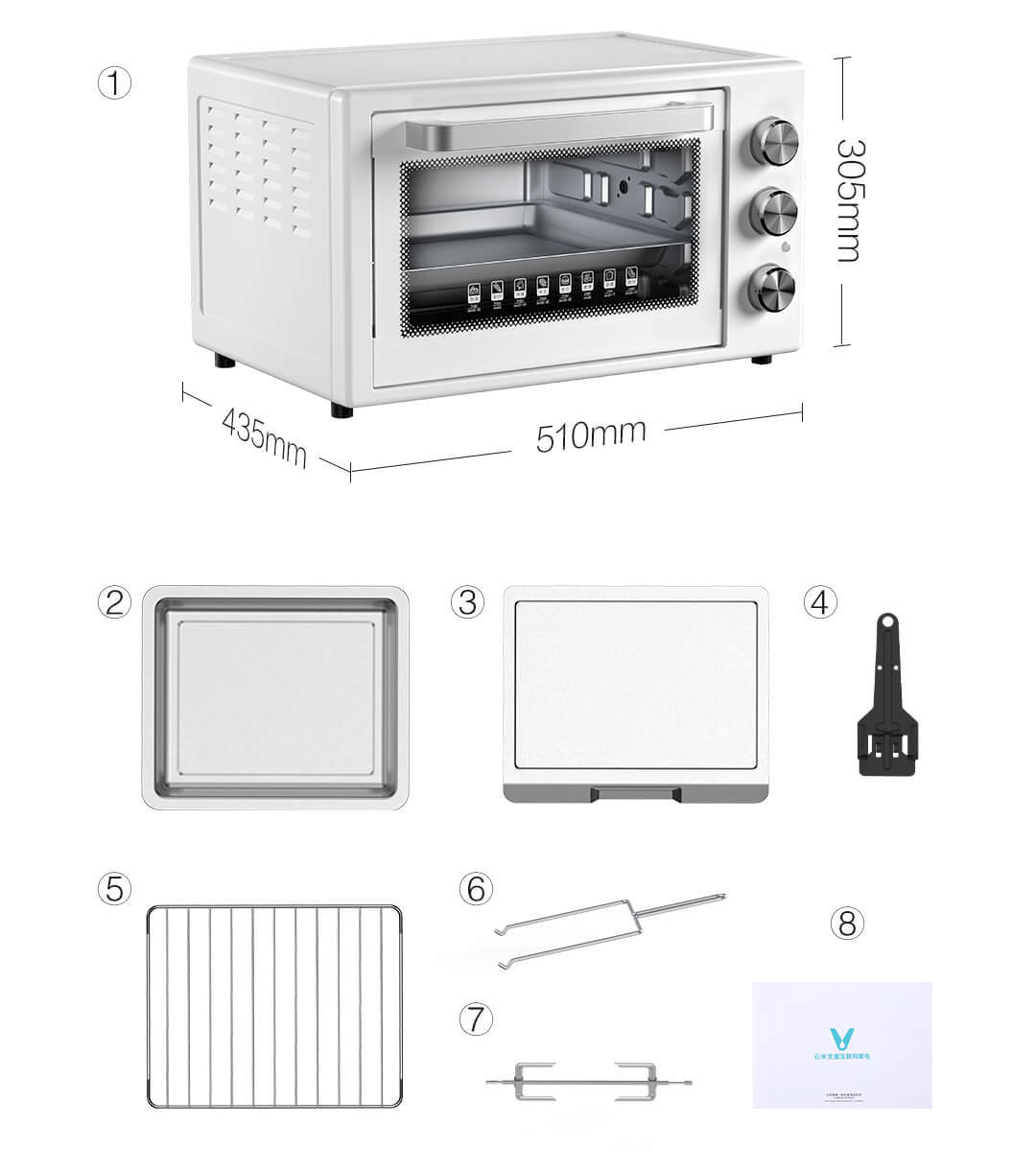 Lò nướng điện 32L Viomi VO3201 với kích thước tương đối nhỏ gọn 510 x 435 x 305mm thuận lợi để đặt ở bất kì vị trí nào trong nhà bạn. Bên cạnh đó thiết kế màu trắng thanh lịch phù hợp với nội thất không gian nhà bạn, khiến không gian bếp trở nên hài hòa hơn.