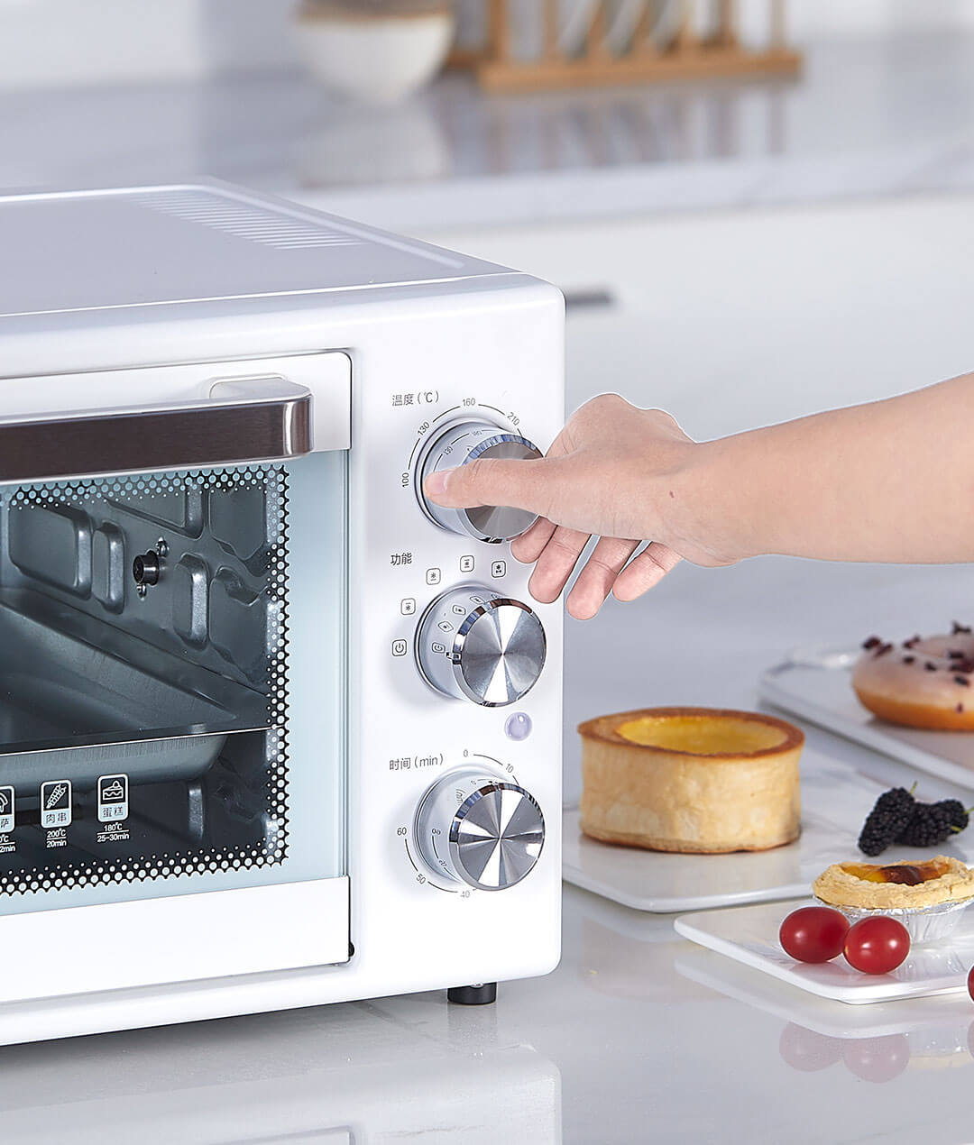 Vì các loại thực phẩm khác nhau sẽ có nhiệt độ nướng khác nhau, vì vậy nhà sản xuất đã trang bị một phạm vi nhiệt độ khá rộng cho lò nướng điện 32L từ 100ºC đến 230 ºC. Người dùng có thể linh hoạt điều chỉnh nhiệt độ nướng theo từng thực phẩm, giúp làm chín thực phẩm nhanh hơn. Cụ thể nhà sản xuất gợi ý một số thời gian nướng các thực phẩm như xúc xích, bánh mì, cá, burger, ngô, pizza, thịt xiên, và bánh ngọt.