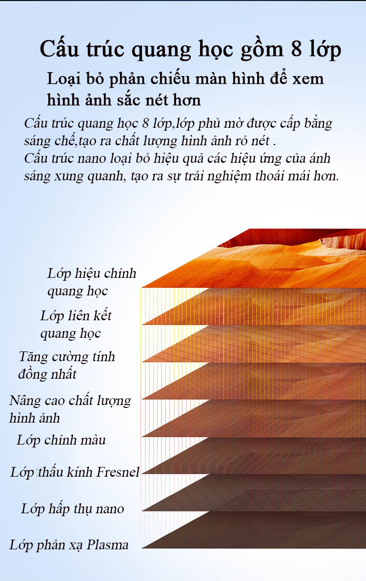 cấu tạo gồm 8 lớp quang học giúp hiện thị hình ảnh sắc nét, chống ánh sáng bên ngoài.