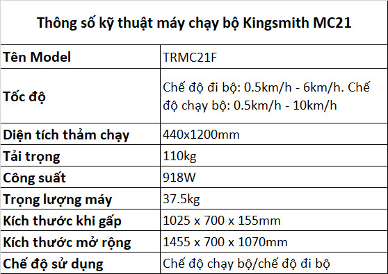 Máy Chạy Bộ Thông Minh Gấp Gọn Kingsmith MC21 New Model 2021