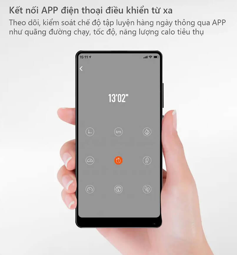 Máy chạy bộ gấp gọn KingSmith MX16 có khả năng kết nối thông minh với ứng dụng điện thoại thông qua Bluetooth. Vì vậy, ngoài chế độ điều khiển từ xa, người dùng còn có thể kiểm soát tốc độ, theo dõi và giám sát quá trình tập luyện hàng ngày, từ đó có những phân tích và điều chỉnh sao cho phù hợp với mục tiêu tập luyện của bản thân