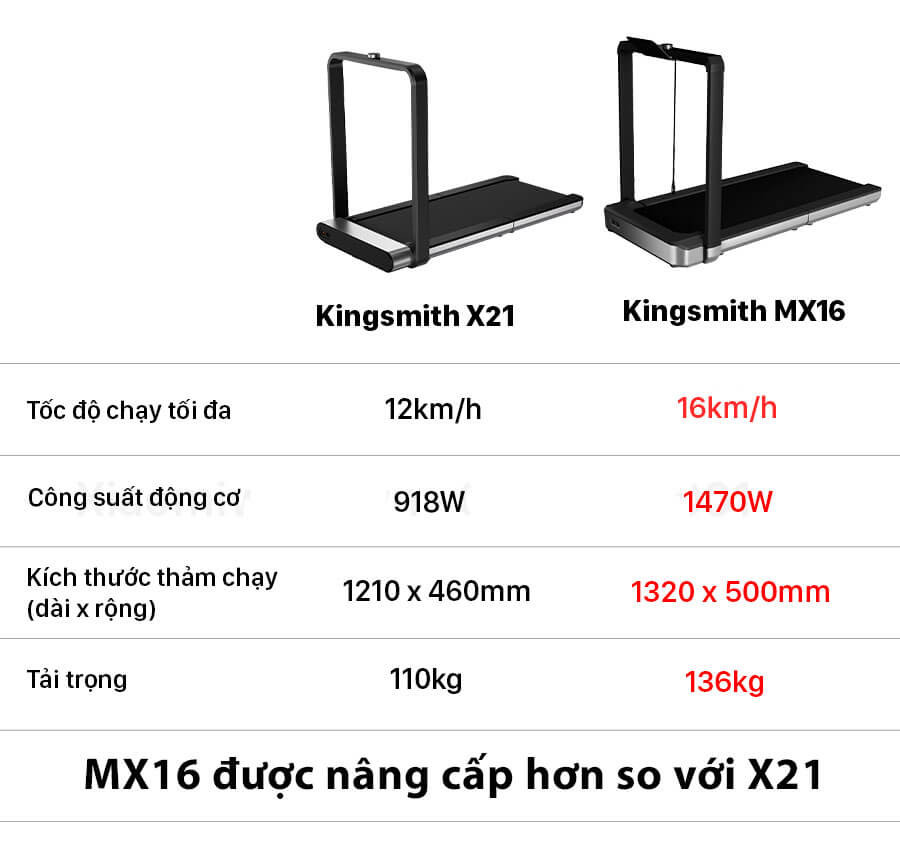 So sánh Kingsmith MX16 và X21