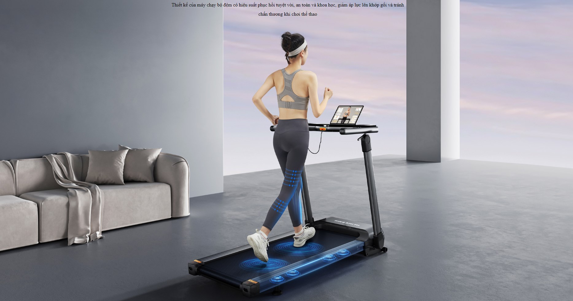 Tương tự như thế hệ trước, máy chạy bộ tại nhà K20S vẫn được trang bị hệ thống hấp thụ rung sốc chuyên nghiệp, giúp bảo vệ hiệu quả khớp gối khỏi bị chấn thương trong các bài tập dài hạn