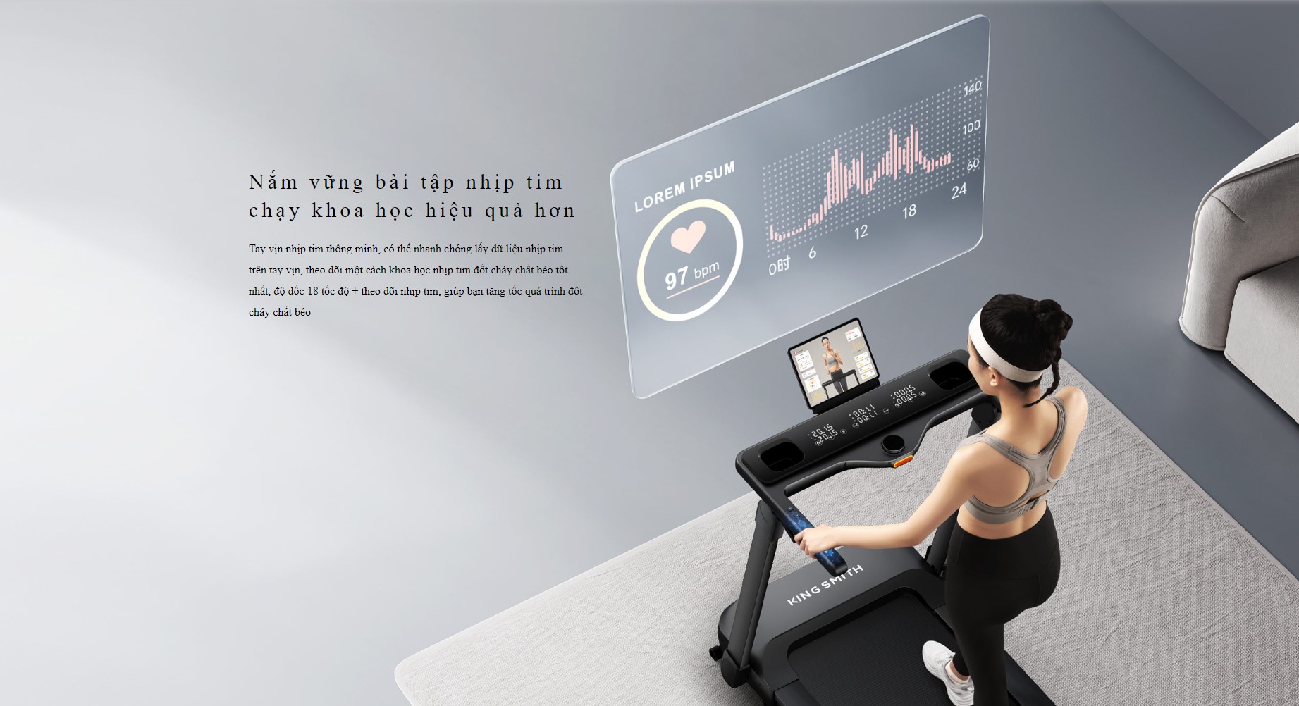 Ngoài ra, máy chạy tại nhà KingSmith K20S còn cho khả năng theo dõi nhịp tim theo thời gian thực thông qua thiết kế tay vịn thông minh, hỗ trợ theo dõi một cách khoa học nhịp tim đốt cháy chất béo tốt nhất để bạn có thể điều chỉnh bài tập phù hợp với thể trạng của mình.