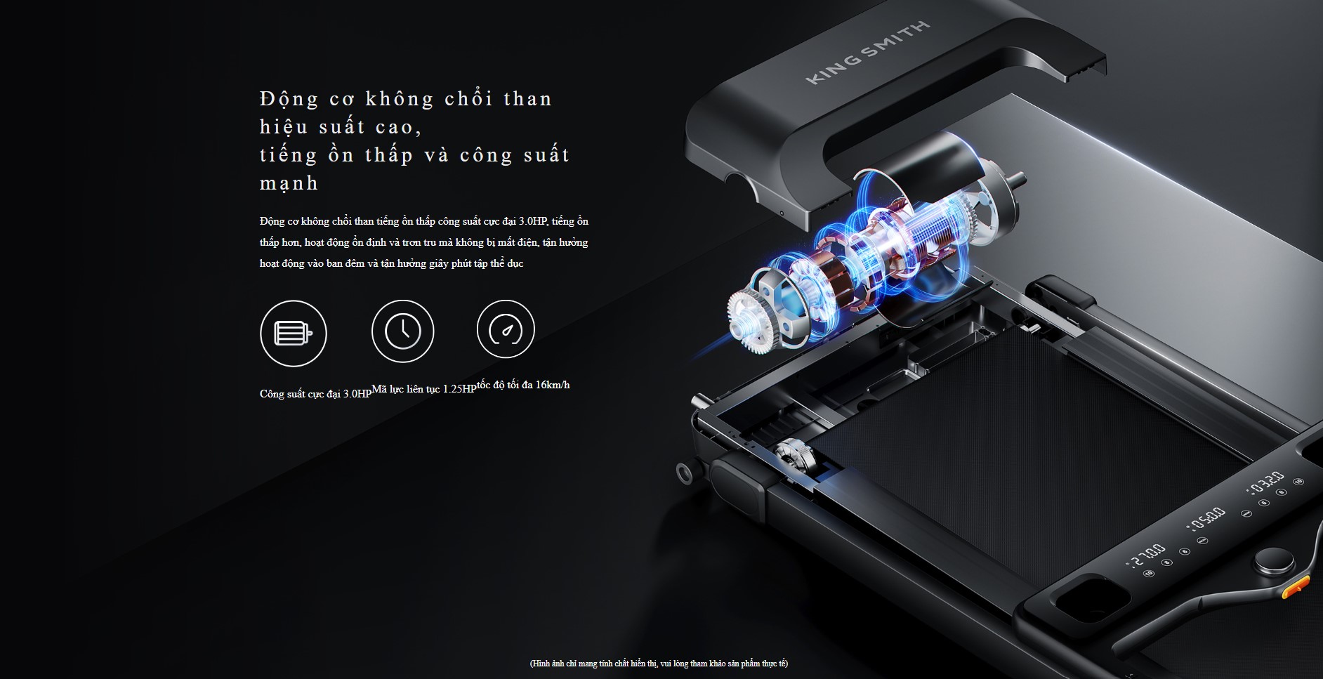 Máy chạy bộ Xiaomi KingSmith sử dụng động cơ không chổi than hiệu suất cao với công suất cực đại 3.0HP. Ưu điểm của động cơ này là cho phép máy hoạt động êm ái với tiếng ồn thấp, đảm bảo được sự ổn định trong suốt quá trình vận hành sử dụng.