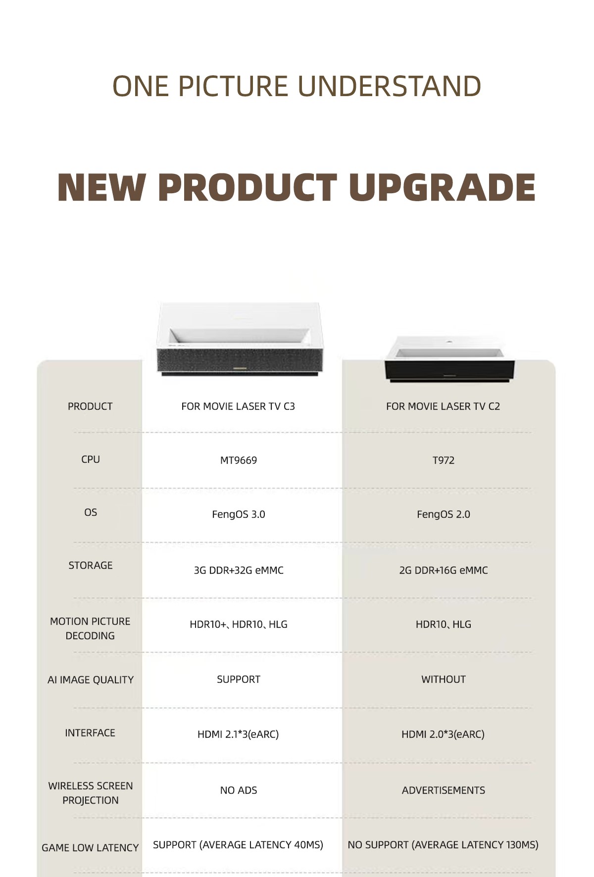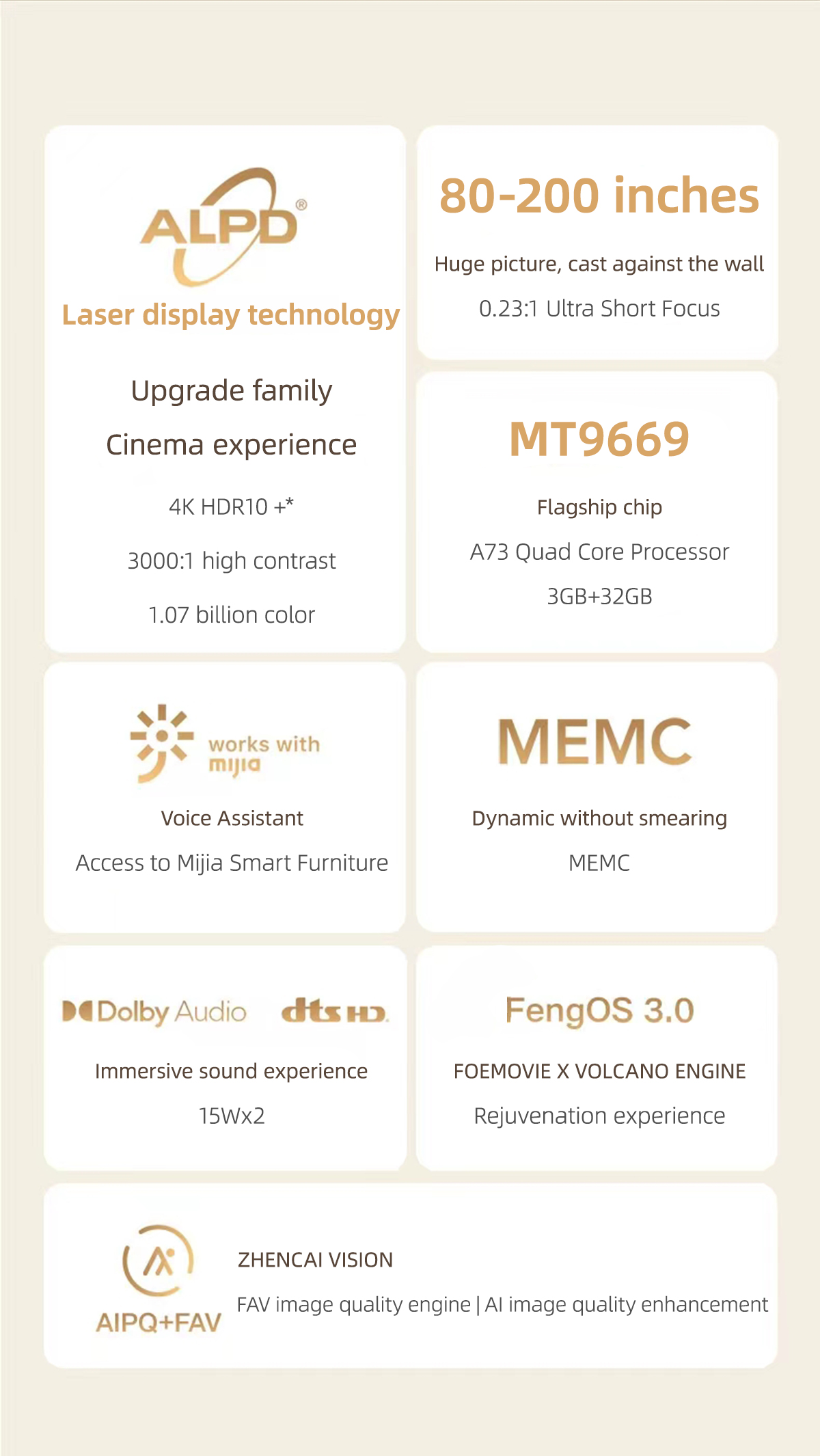 Fengmi gần đây đã ra mắt một máy chiếu siêu ngắn mới, được đặt tên là Fengmi Laser TV C3. Máy chiếu này có khả năng vượt trội để chiếu hình ảnh rộng tới 200 inch với độ sáng lên tới 400 nit. Cùng với đó, máy chiếu được trang bị một loạt tính năng ấn tượng, chẳng hạn như hỗ trợ HDR10+, MEMC và hai loa 15W tích hợp. Thiết bị này cũng tương thích với hệ thống nhà thông minh Xiaomi Mijia.