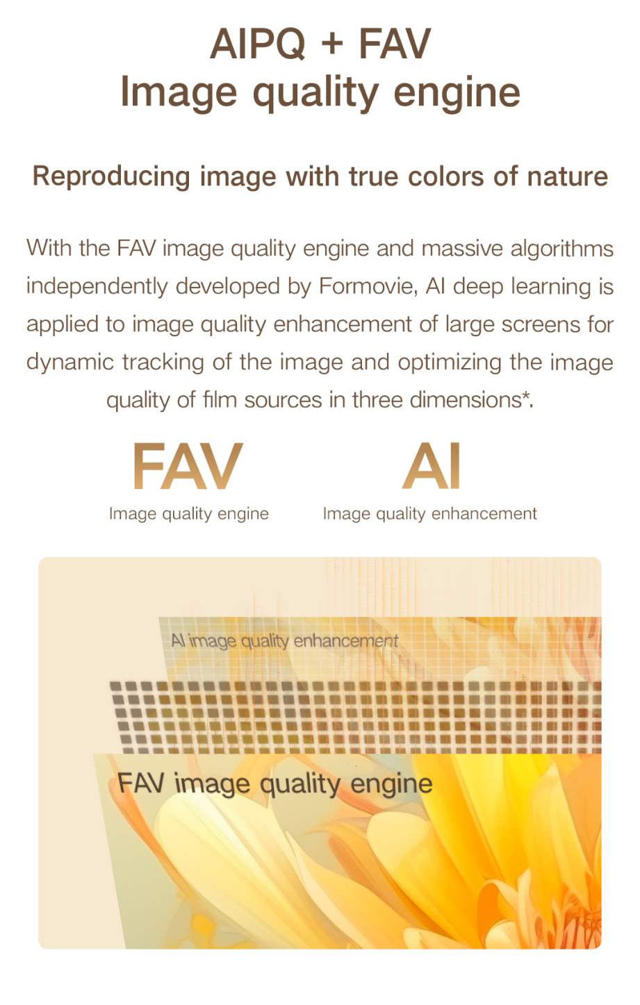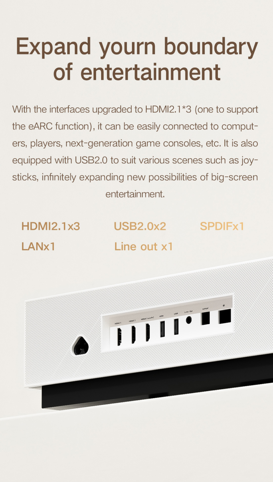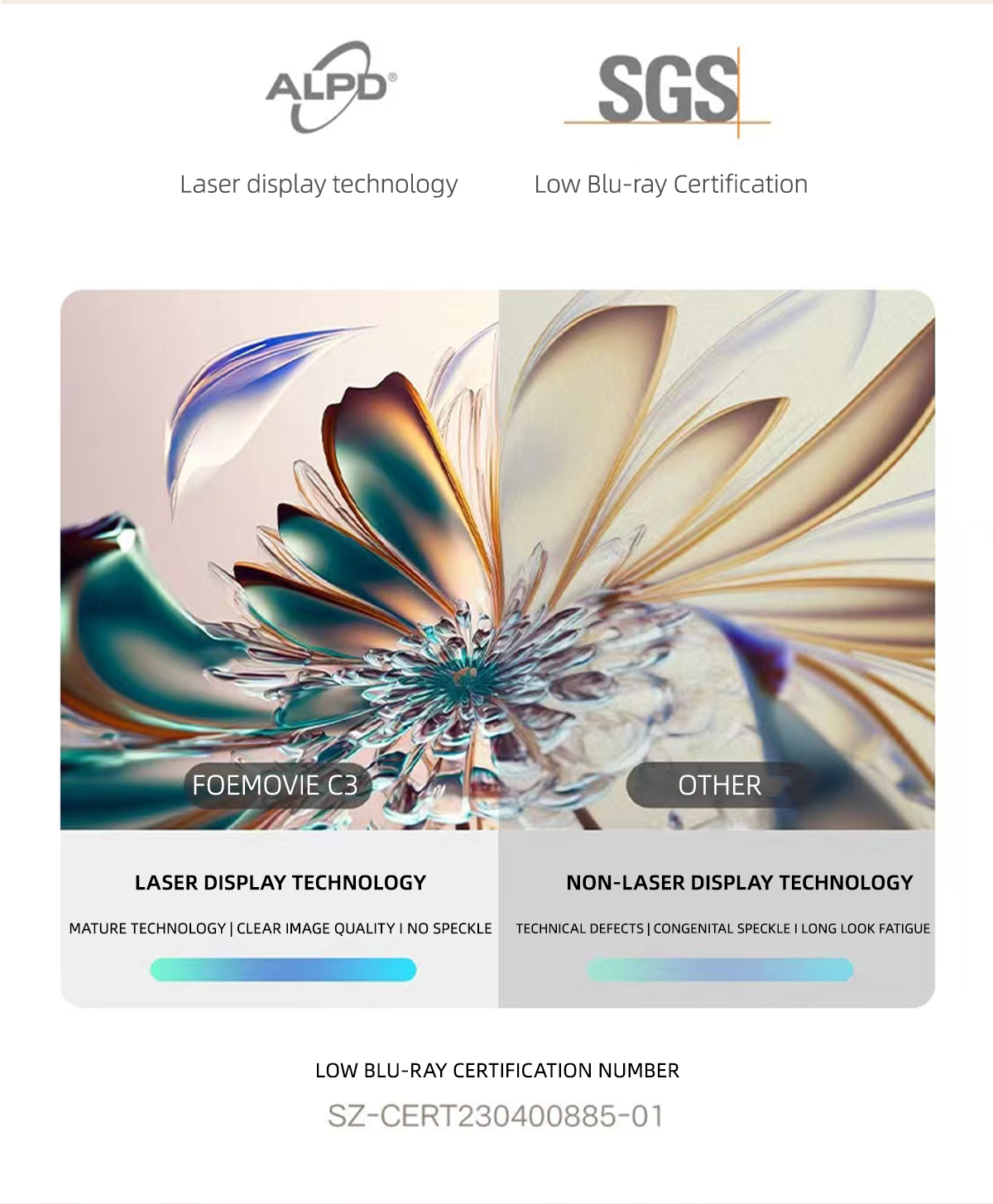 Máy chiếu siêu gần 4K này sử dụng nguồn sáng laze ALPD, cho phép nó cung cấp mức độ sáng lên tới 400 nit. Thiết bị có thể chiếu hình ảnh có chiều rộng từ 80 đến 200 inch và tỷ lệ chiếu 0,23:1 cho phép thiết bị tạo ra hình ảnh 100 inch với thiết bị được đặt cách màn hình chỉ 24 cm (~9,4 inch). C3 cũng được trang bị công cụ nâng cao hình ảnh AI, làm mịn chuyển động MEMC, tỷ lệ tương phản 3.000:1 và hỗ trợ HDR10+, HDR10 và HLG.