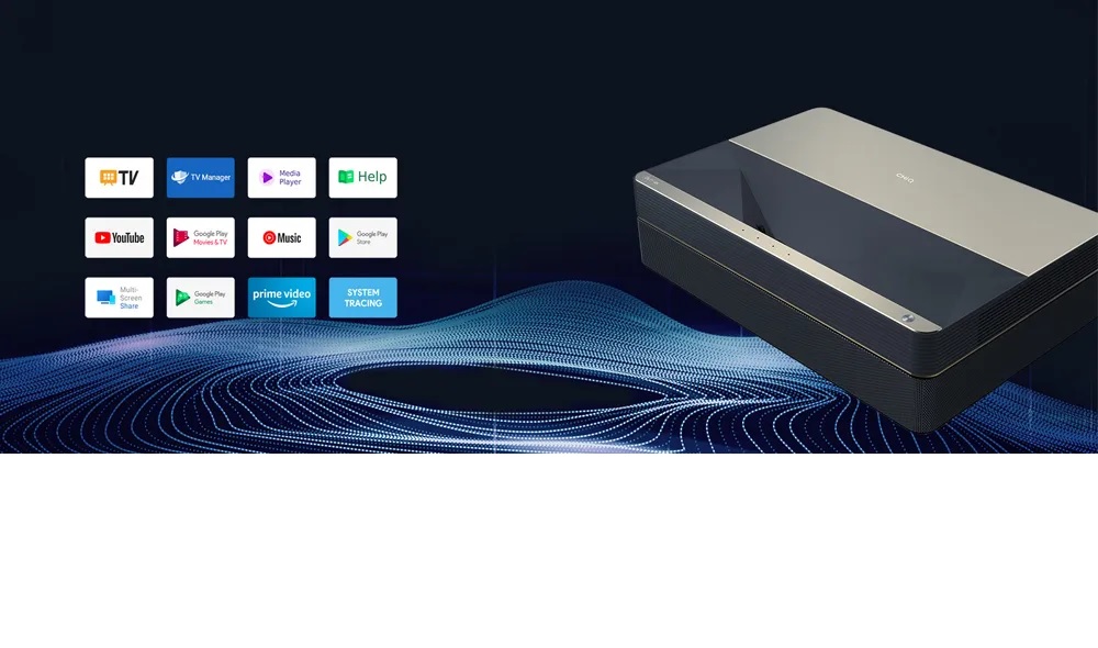 Changhong B8U 2300ANSI Lumens Lấy nét siêu ngắn Rạp hát tại nhà Android 11.0 Smart TV với trò chơi video 3D MEMC