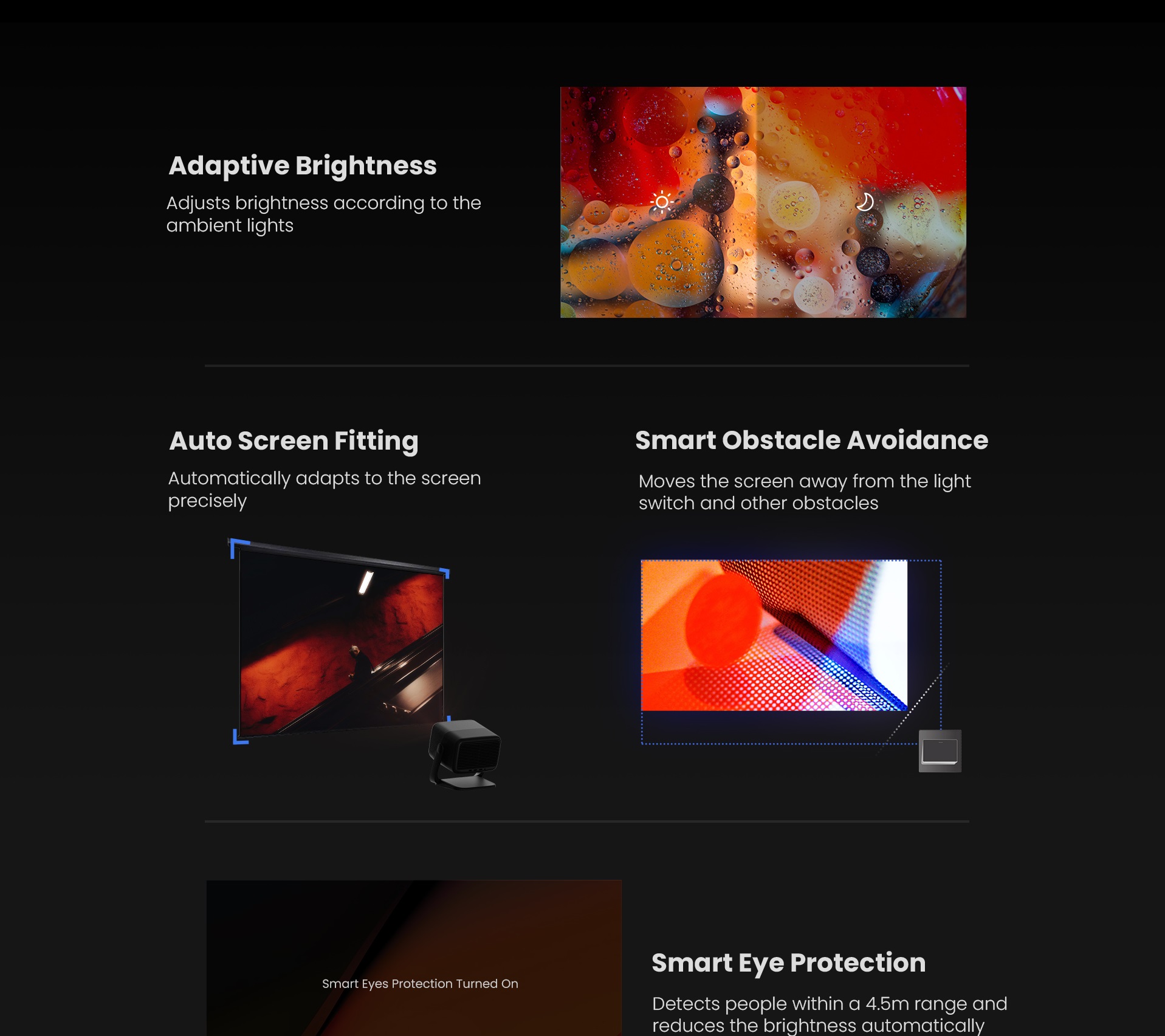 Chế độ bảo vệ mắt thông minh, phát hiện người trong phạm vi 4,5m và tự động giảm độ sáng .