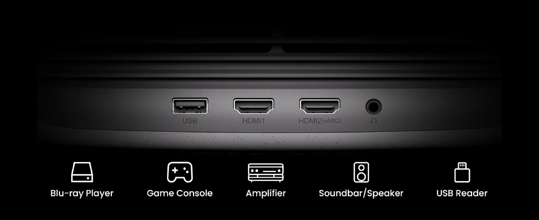 2 HDMI 2.1 (một hỗ trợ eARC), Một USB-A 2.0, Một giắc cắm tai nghe 3,5 mm
