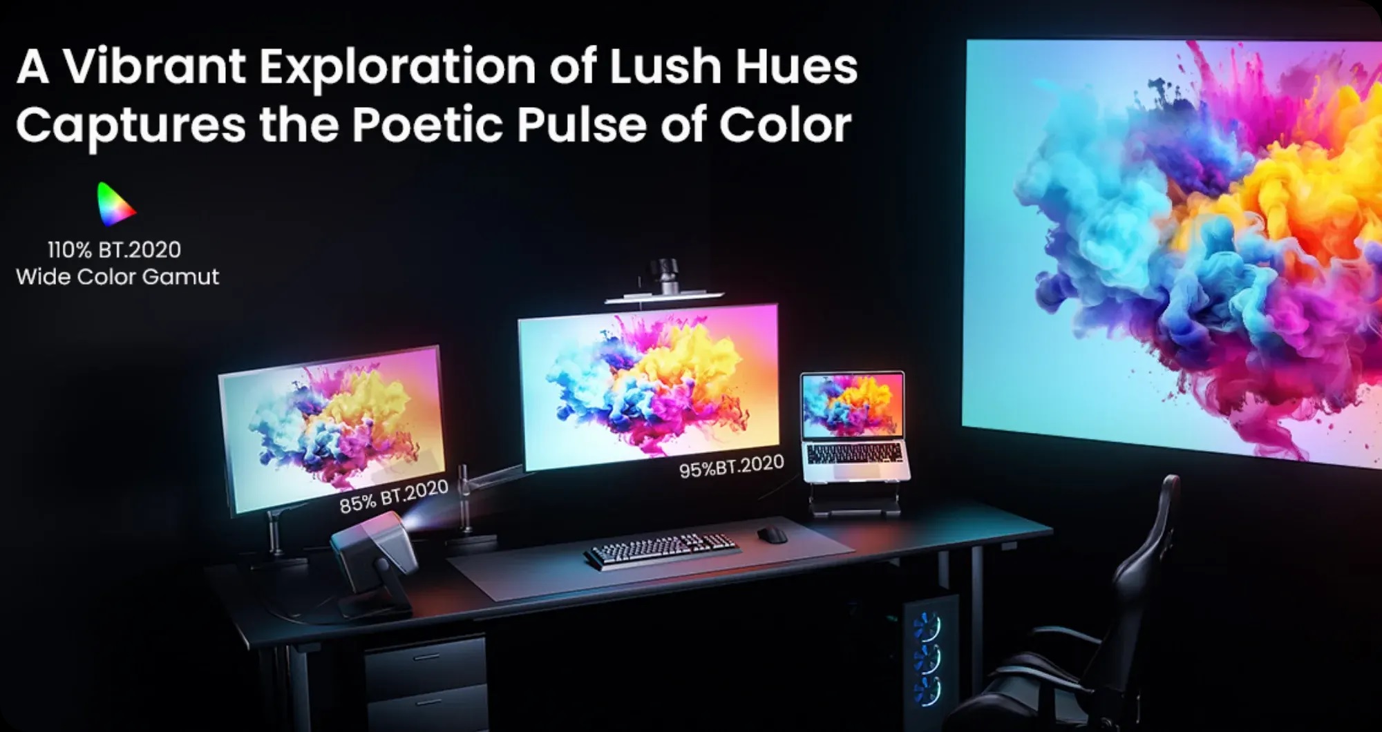 Với độ phân giải 4K+ và độ sáng 3500 ANSI. Trải nghiệm độ sáng và rõ nét màu sắc vô song, mang đến hình ảnh sống động, chân thực với gam màu BT.2020 110%—gấp đôi so với máy chiếu Rec.709 tiêu chuẩn.
