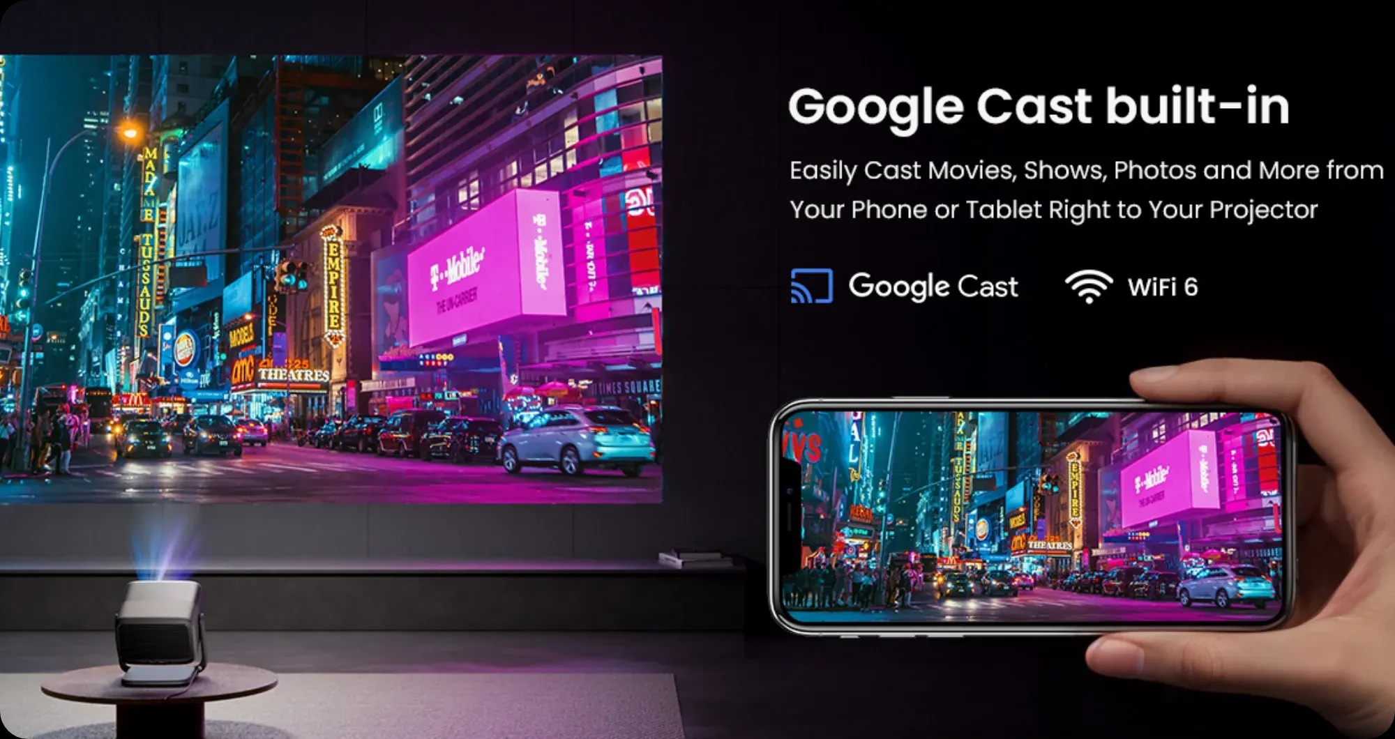 Dễ dàng truyền phim, chương trình, ảnh và nhiều nội dung khác trực tiếp từ điện thoại hoặc máy tính bảng sang máy chiếu.