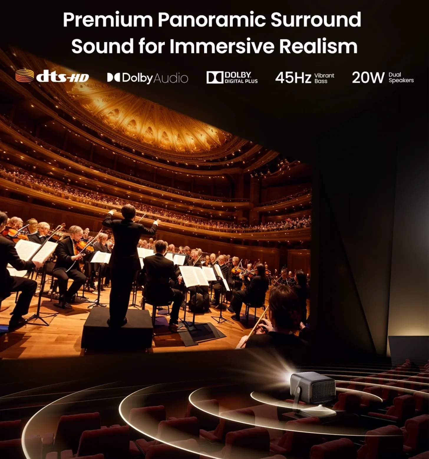 Máy chiếu 4K JMGO N1S Ultimate có tính năng xử lý âm thanh tiên tiến tự động điều chỉnh âm thanh dựa trên môi trường của bạn, mang lại hiệu suất âm thanh tối ưu. Trải nghiệm âm thanh Hi-Fi đắm chìm, được đồng sáng tạo với Dynaudio và ngạc nhiên với âm trầm tần số cực thấp 45Hz.