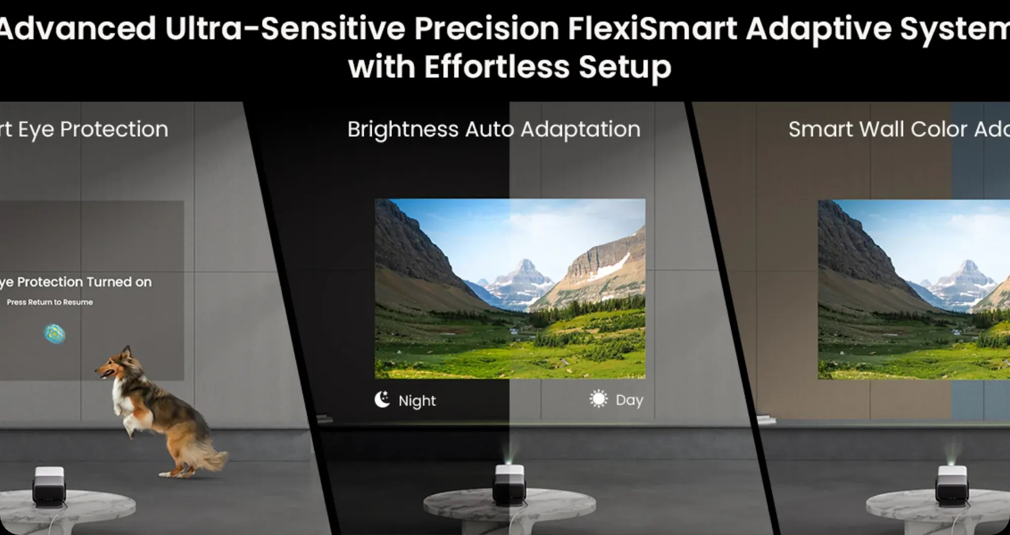 Điều chỉnh thông minh, độ rõ nét tức thì. Hiệu chỉnh tức thời giống như gimbal với chức năng lấy nét tự động và điều chỉnh keystone để có hình ảnh rõ nét, chính xác.