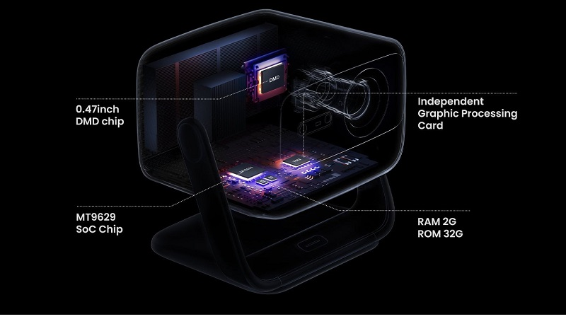 - Chip SoC MT9629 xử lý hình ảnh và các tính năng trên máy chiếu