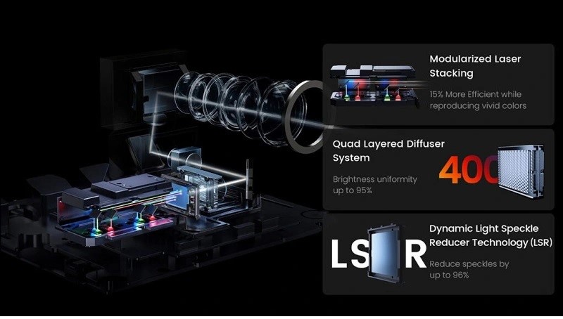 Đặc biệt hãng còn ứng dụng công nghệ xếp chồng laser module, hệ thống khuếch tán 4 lớp, công nghệ giảm đốm sáng SLR để mang đến sự cải tiến vượt bậc trong hình ảnh. Đem đến hiệu suất tăng 15%, độ sáng đồng đều đạt trên 95%, giảm tình trạng đốm màu trên 96% so với phiên bản trước