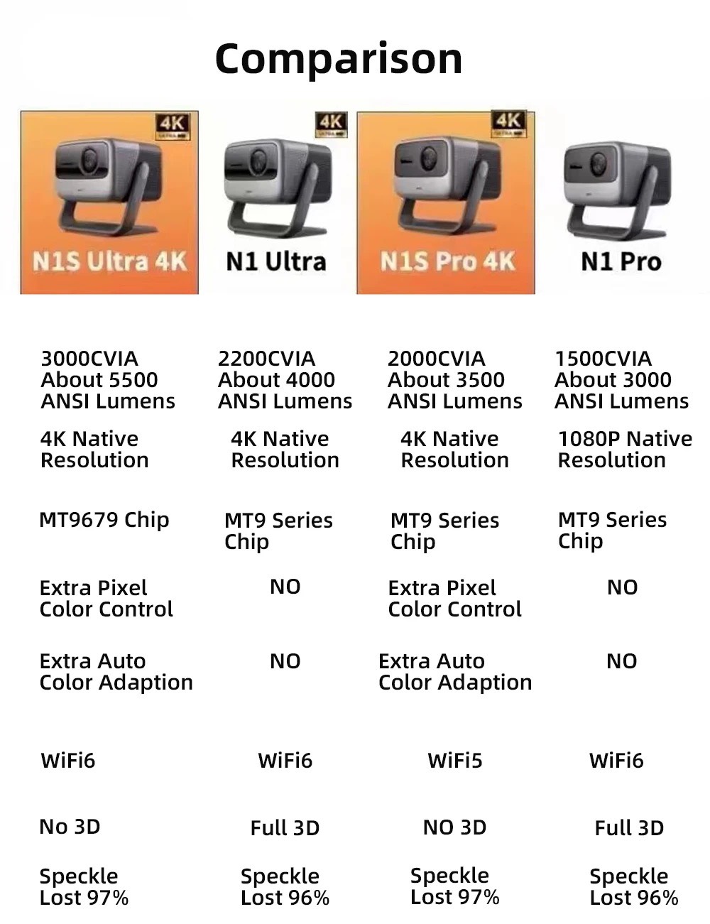 Tiếp nối thành công của dòng máy N1, Jmgo cho ra mắt thị trường bộ đôi máy chiếu N1s Pro và N1s Ultra vẫn với thiết kế cực kỳ ấn tượng với phần chân gimbal, đi kèm chất lượng hình ảnh FullHD và 4K UHD sắc nét tương tự with bộ tích hợp từ Dynaudio cấp cao. Mã N1s Ultra là mã máy 4K UHD, từ khi ra mắt cho đến tận thời điểm hiện tại vẫn đang được rất nhiều khách hàng quan tâm đến, là loại lựa chọn "ngày từ cái nhìn đầu tiên" của rất nhiều người chơi máy tham chiếu. Đặc biệt hơn, N1s Ultra hiện đã hỗ trợ phiên bản quốc tế, chạy hệ điều hành Google TV và đặc biệt là chủ sở hữu Netflix chính, giúp khách hàng sử dụng dễ dàng hơn.