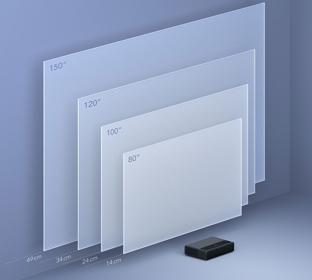 Được biết, chiếc máy chiếu này có thể chiếu màn hình 80 inch khi đặt cách xa màn chiếu khoảng 5.5 inch (~14 cm), cũng như chiếu màn hình tối đa 150 inch nếu đặt cách xa màn chiếu ít nhất 19 inch (hơn 48 cm).