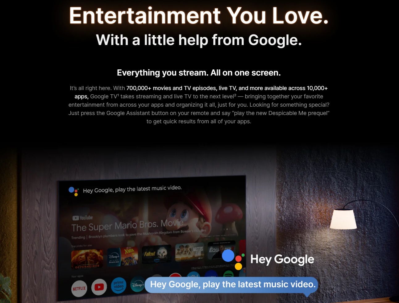 Netflix chính chủ được chứng nhận và Google TV cung cấp hơn 700.000 phim và tập phim truyền hình, truyền hình trực tiếp và quyền truy cập vào hơn 10.000 ứng dụng. c