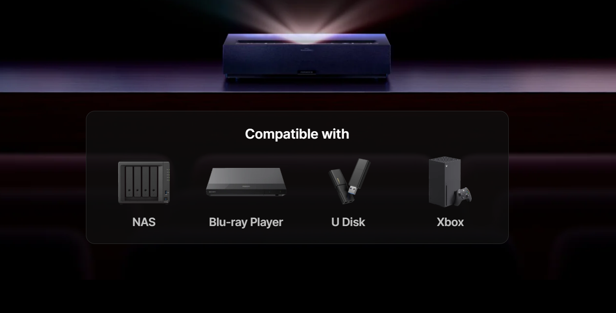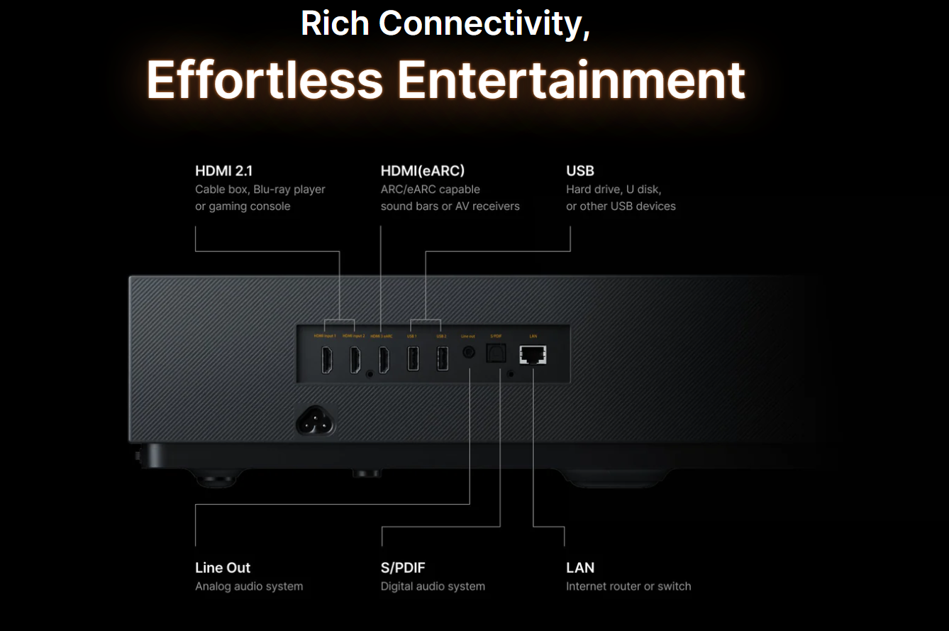 Formovie Theater Premium hỗ trợ kết nối với nhiều thiết bị qua các cổng phổ biến, giúp bạn dễ dàng thưởng thức nội dung yêu thích mà không giới hạn.
