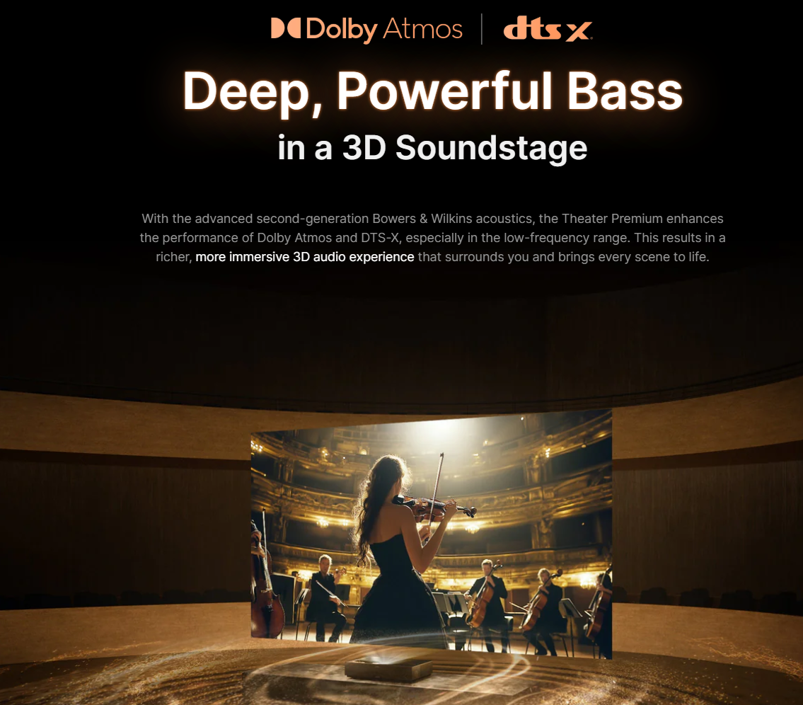 Theater Premium duy trì phạm vi gam màu rộng 107% BT.2020, với hiệu chuẩn chính xác hơn, nó cung cấp độ trung thực màu sắc tuyệt đẹp ngay khi xuất xưởng, nó có hình ảnh sống động và chân thực hơn ngay từ khi bạn bật nguồn.