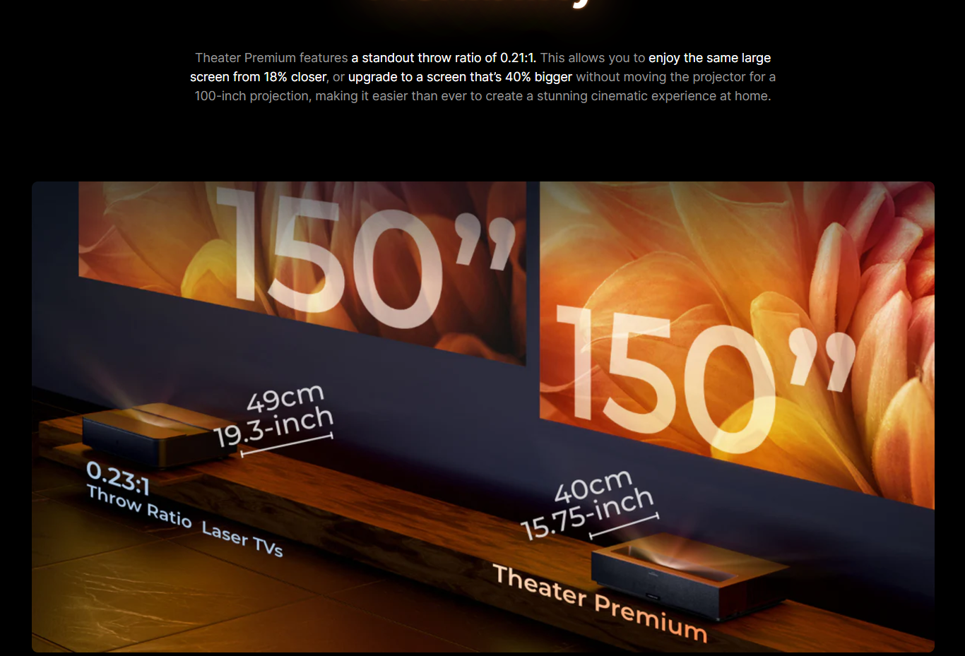 Máy chiếu Laser 4K TV siêu gần Formovie Theater Premium là bản nâng cấp từ Formovie Theater đình đám (trứ danh số 1 của top 10 máy chiếu siêu gần tốt nhất trên thế giới theo bài: 2022 Laser TV Showdown và hội máy chiếu projectorcentral bình chọn).