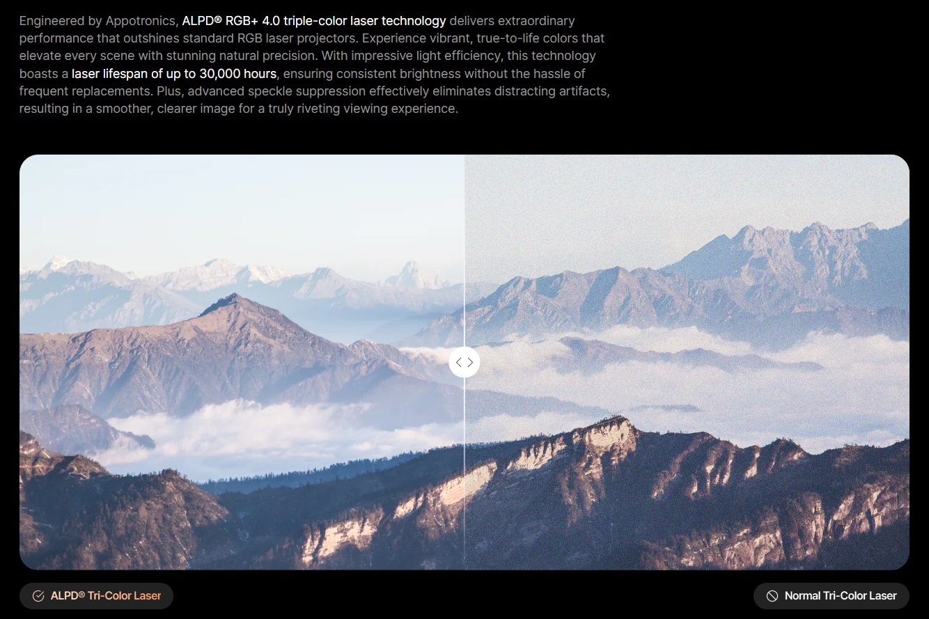 - Nguồn sáng: trilaser ALPD RGB+ 4.0