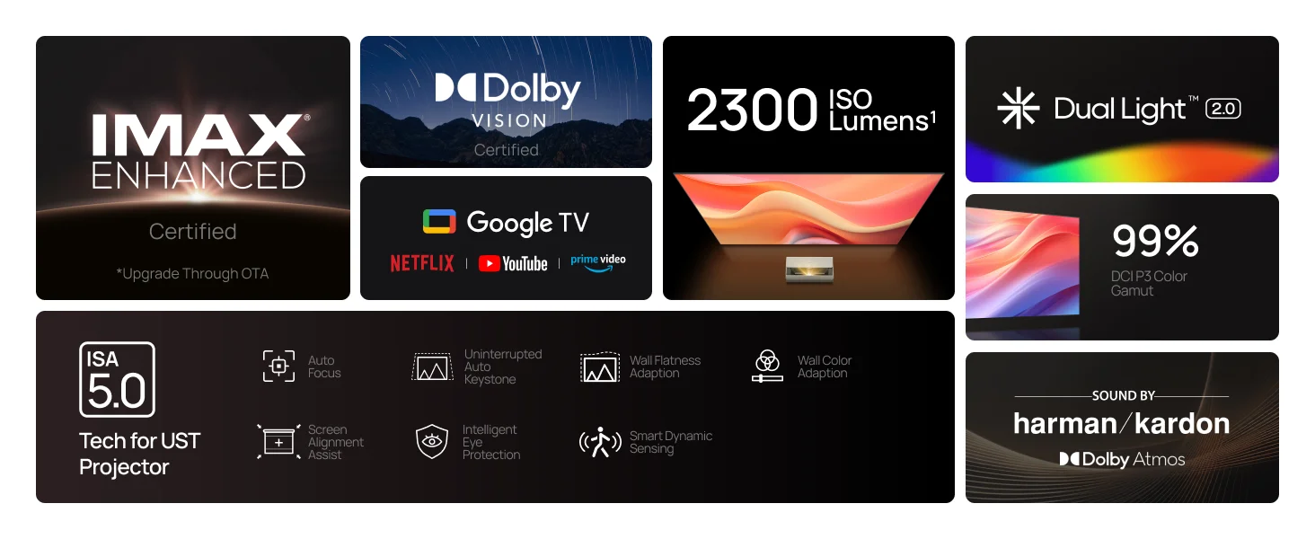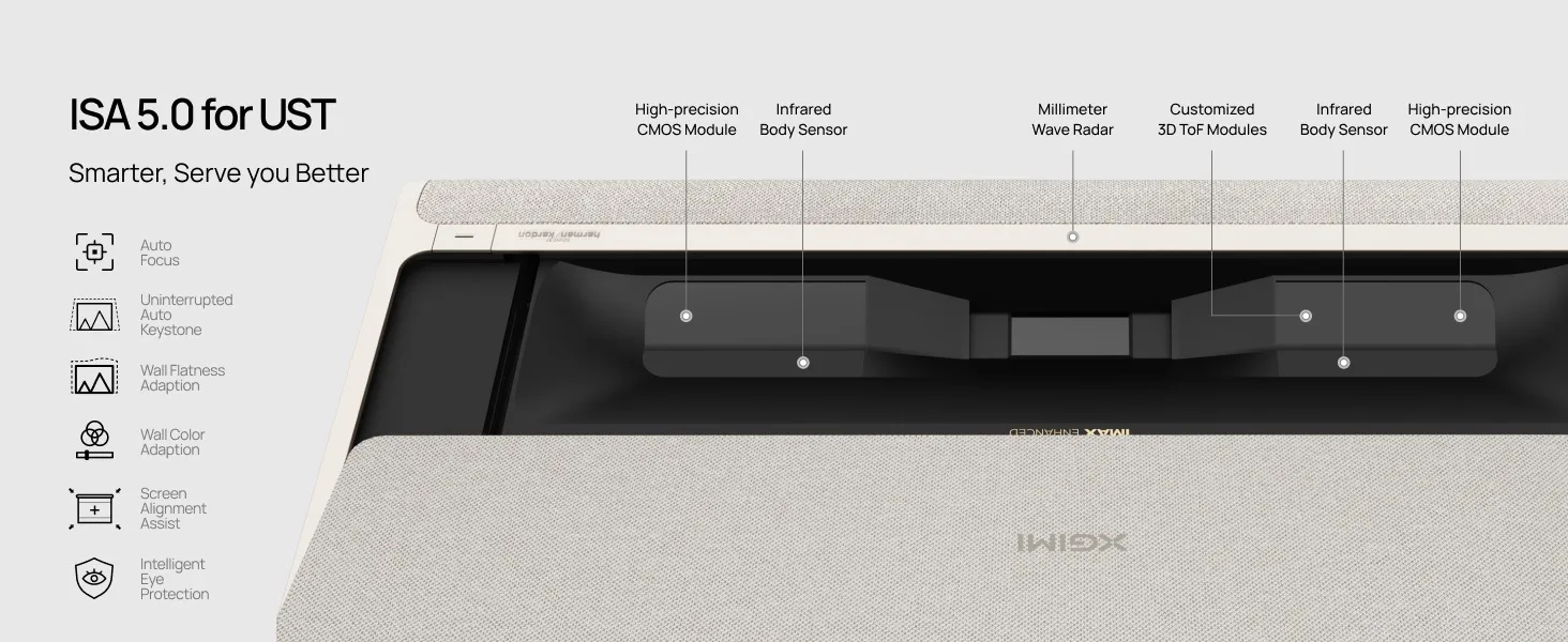 ISA 5.0 (Intelligent Screen Adaptation) enables instant auto-focus, auto-keystone, and obstacle avoidance.