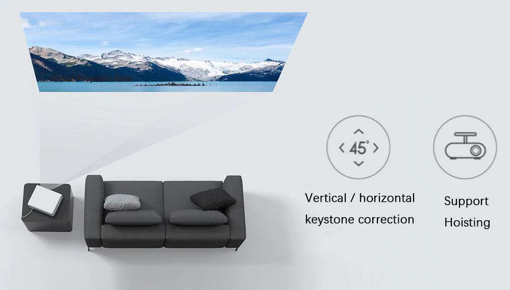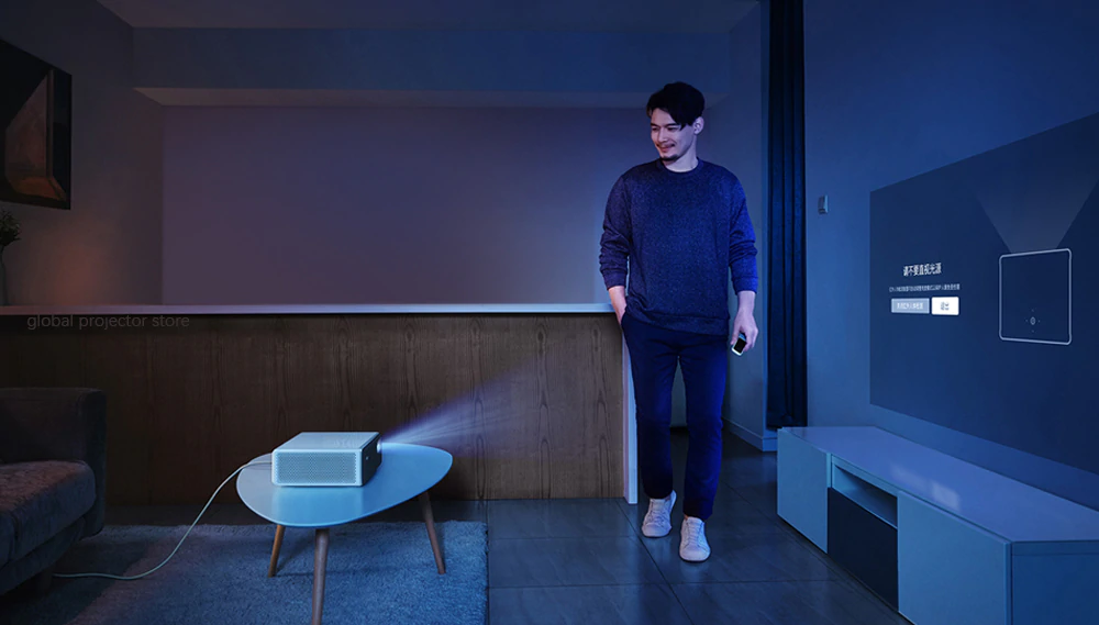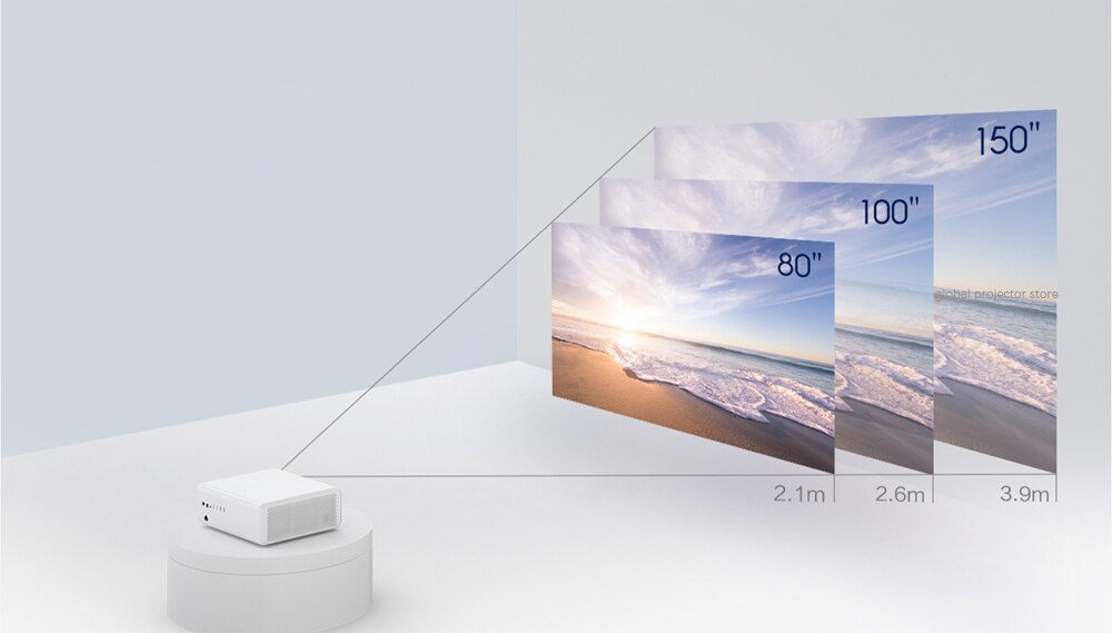 Tỷ lệ phóng 1.2:1, không gian hạn chế ánh sáng máy chiếu Xiaomi Mijia Laser 150 có thể chiếu ra màn chiếu lên tới 150 inch, bạn có thể tùy chỉnh kích thước màn chiếu từ 60-150 inch bằng cách điều chỉnh khoảng cách đặt máy chiếu gần hoặc xa màn