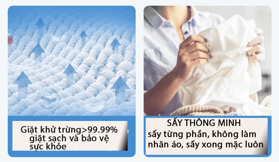 Tiện lợi, tiết kiệm thời gian làm khô quần áo với máy giặt sấy tích hợp 2 trong 1