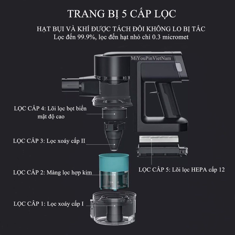 - 5 lớp lọc làm sạch đến 99,9% bụi mịn nhỏ 0,3mm